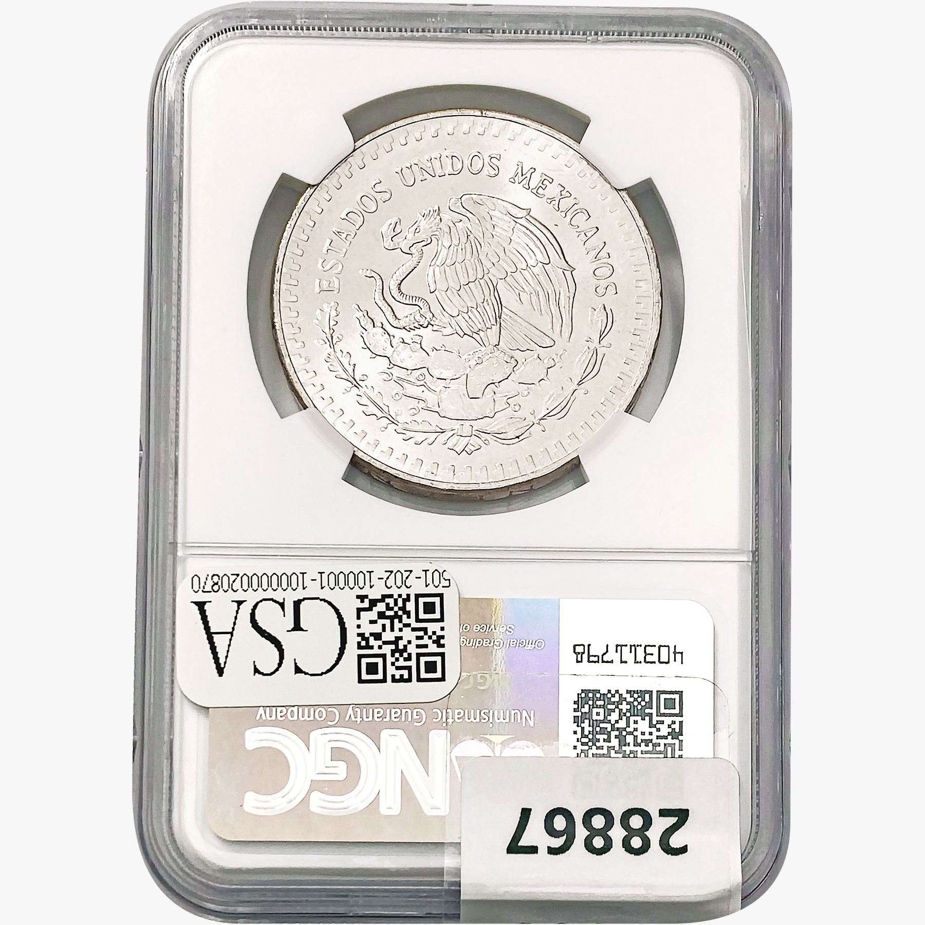 e. Coins sold referencing a third-party grading service are sold “AS IS” without any express or implied warranty, except for a guarantee by GSA that they are genuine. Removal or alteration of the holder, voids all of Bidder’s claims concerning that Product. Certain warranties may be available from the grading services and Bidders are referred to them for further details: Numismatic Guaranty Corporation (NGC), PO Box 4776, Sarasota, FL 34230, www.ngccoin.com/services/writtenguarantee.asp; Professional Coin Grading Services (PCGS), PO Box 9458, Newport Beach, CA 92658, www.pcgs.com/guarantee.html; ANACS, 6555 S. Kenton St., Ste. 303, Englewood, CO 80111; and Independent Coin Grading Co. (ICG), 7901 East Bellview, Ave., Suite 50, Englewood, CO 80111.