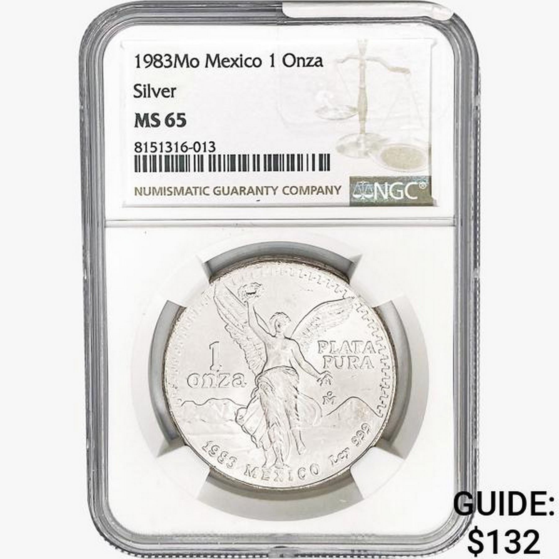1983Mo 1oz. Silver Mexicanos Onza NGC MS65