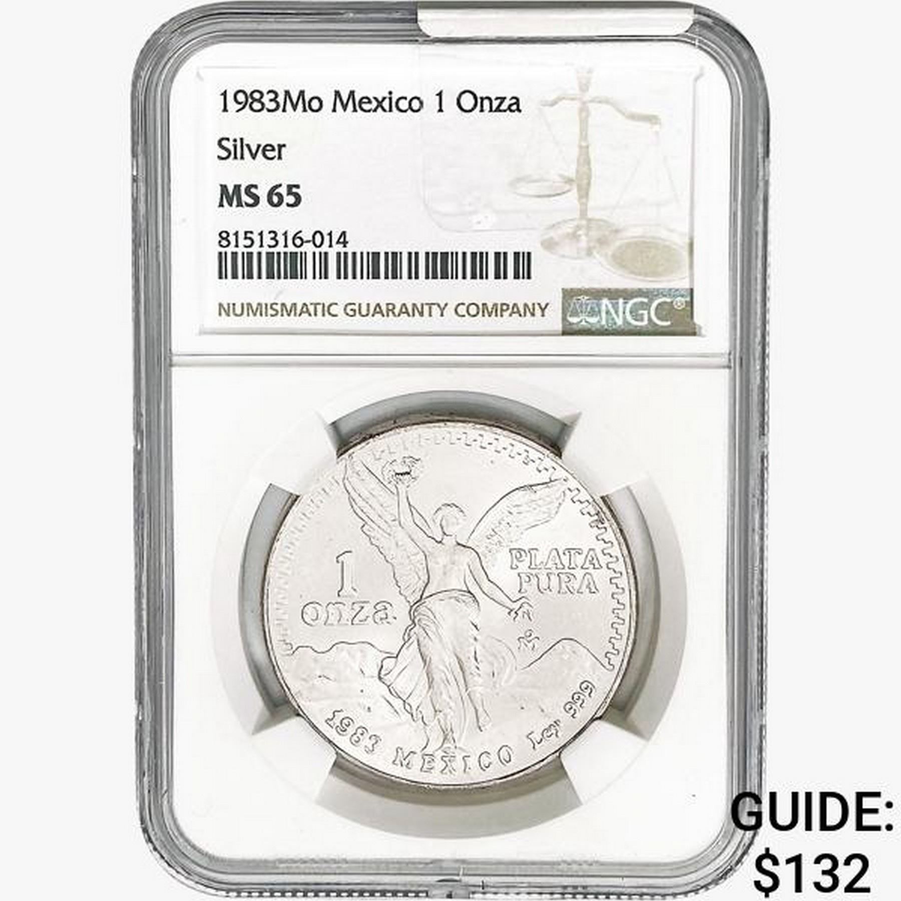 1983Mo 1oz. Silver Mexicanos Onza NGC MS65