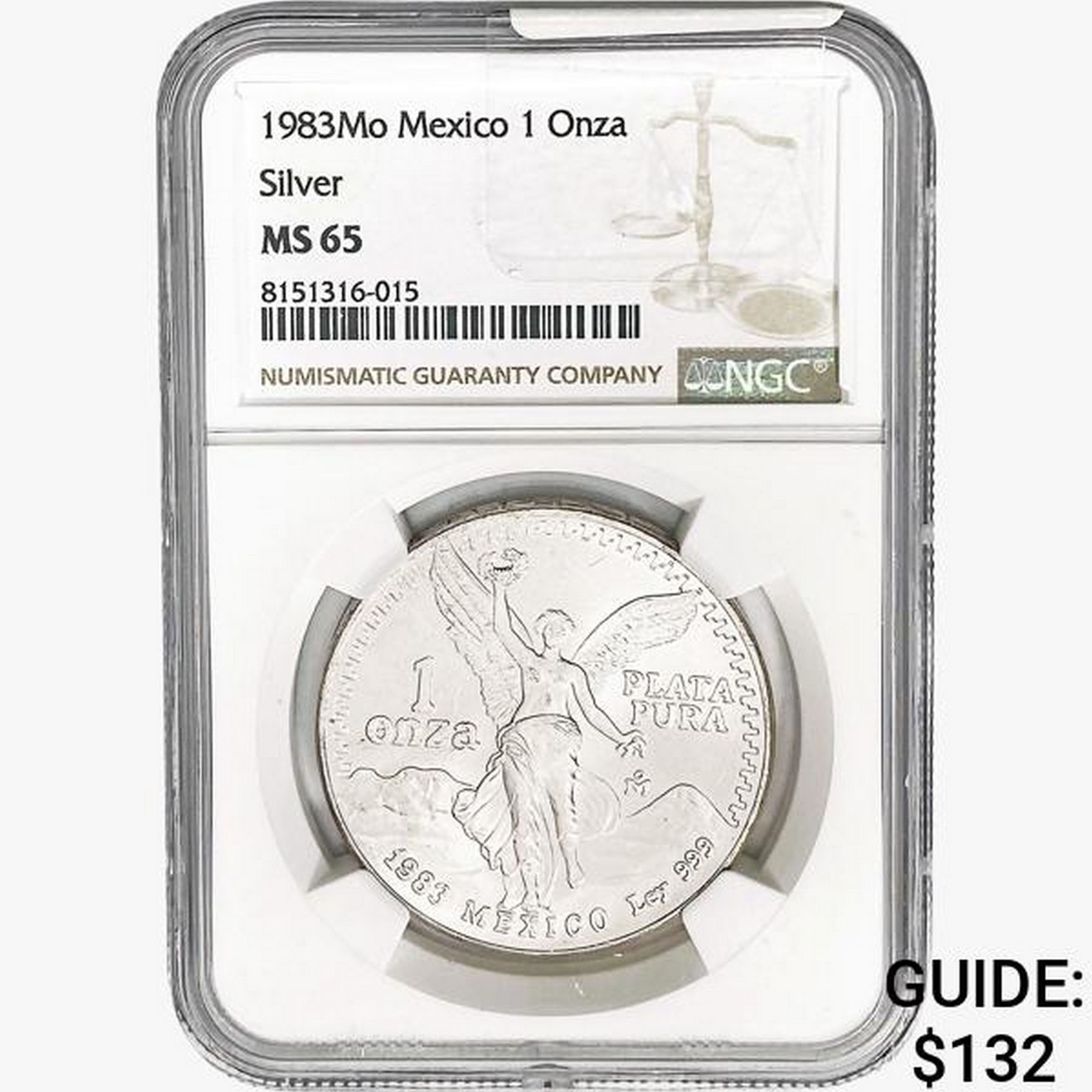 1983Mo 1oz. Silver Mexicanos Onza NGC MS65