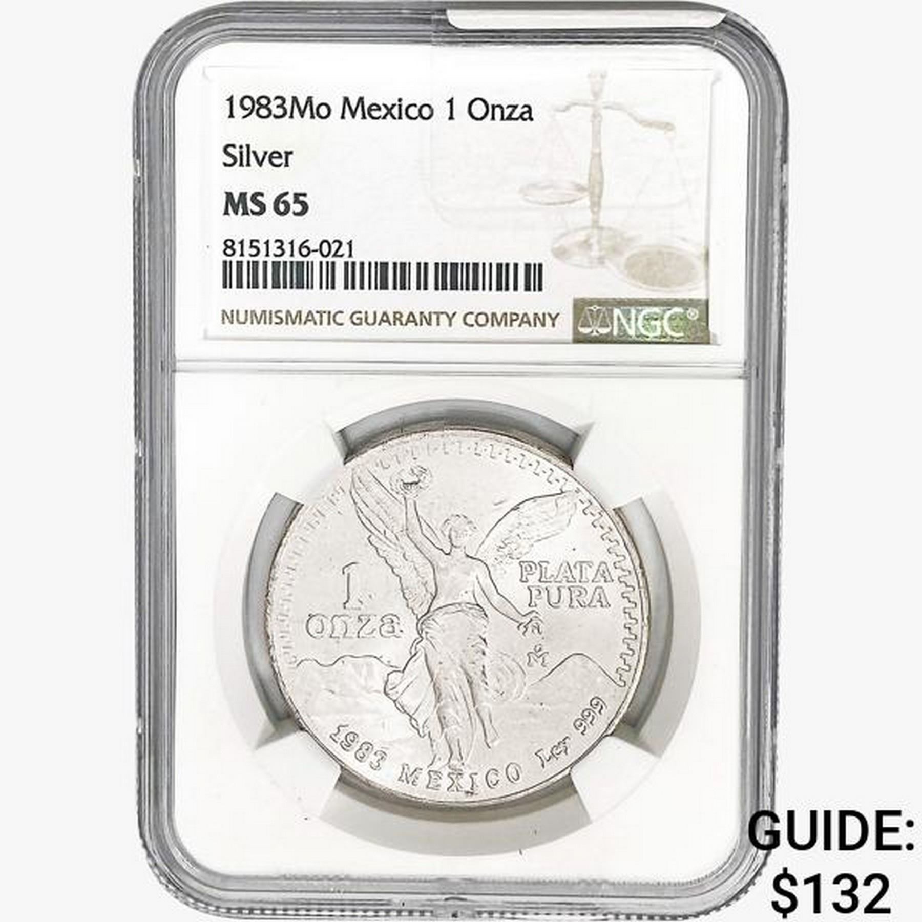 1983Mo 1oz. Silver Mexicanos Onza NGC MS65