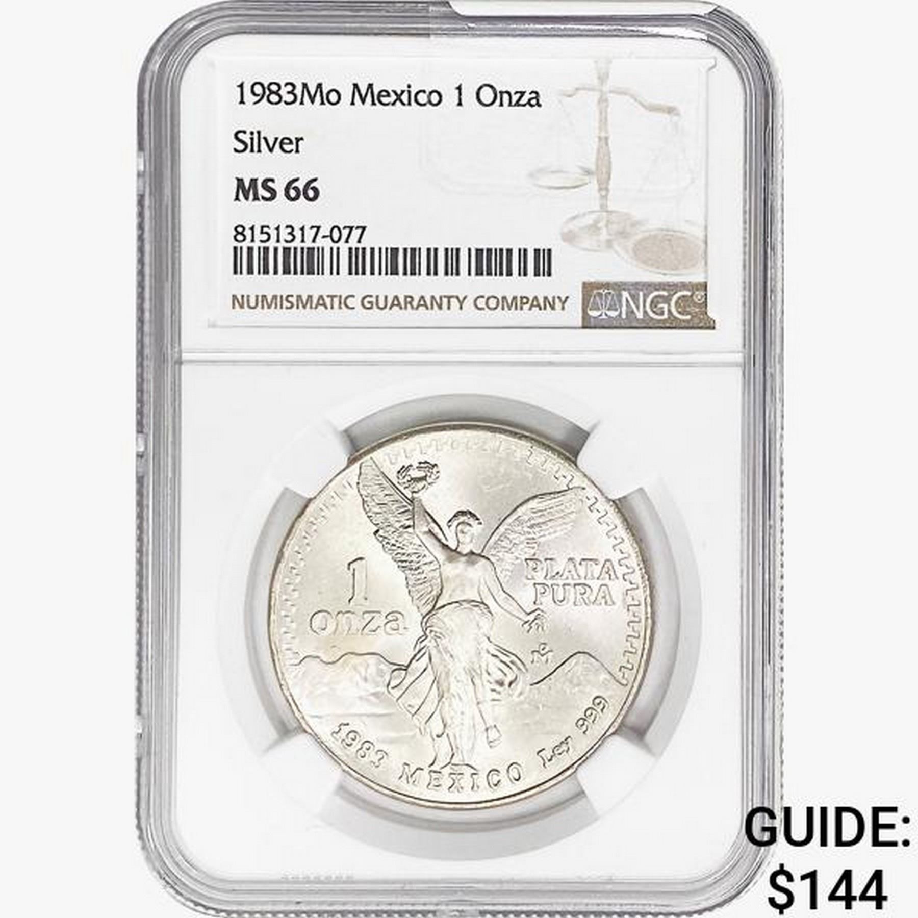 1983Mo 1oz. Silver Mexicanos Onza NGC MS66