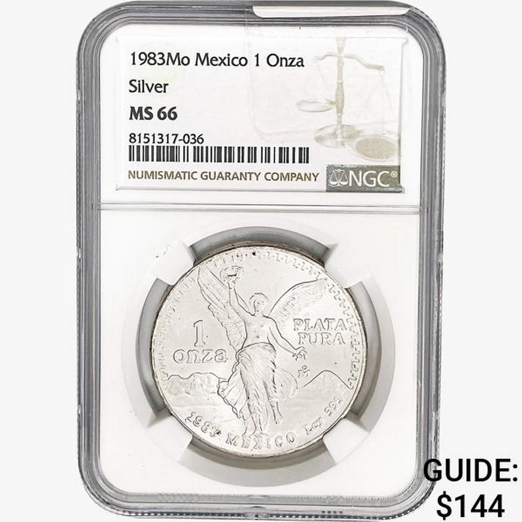 1983Mo 1oz. Silver Mexicanos Onza NGC MS66