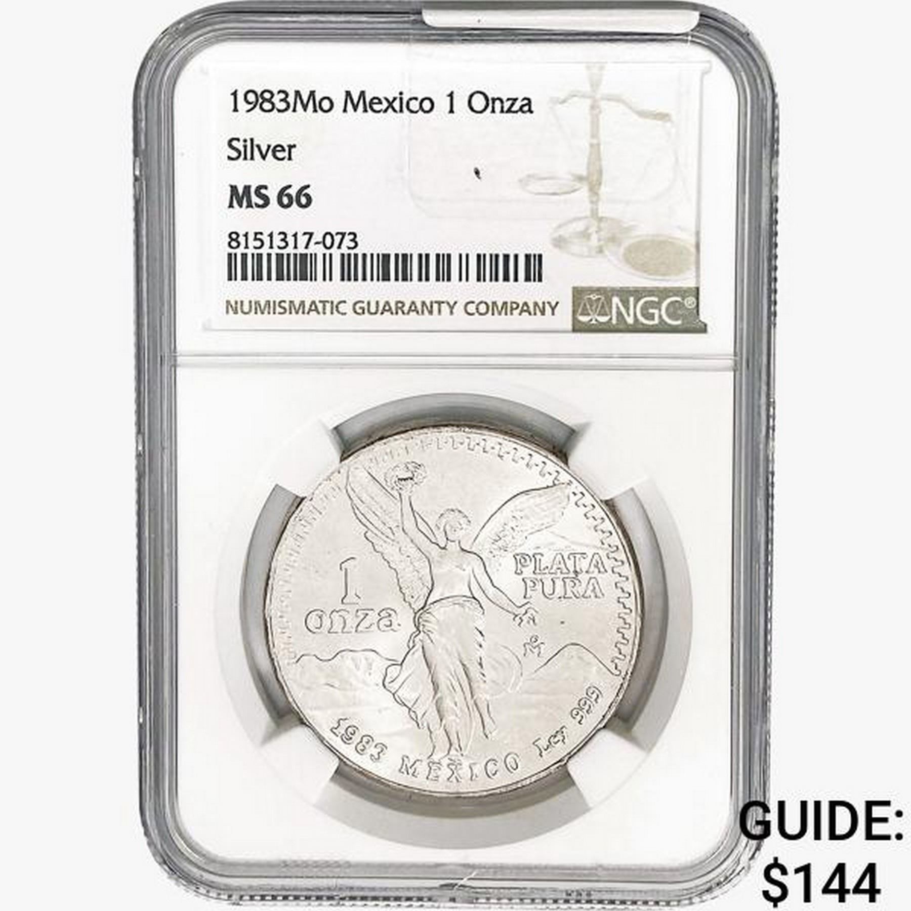 1983Mo 1oz. Silver Mexicanos Onza NGC MS66