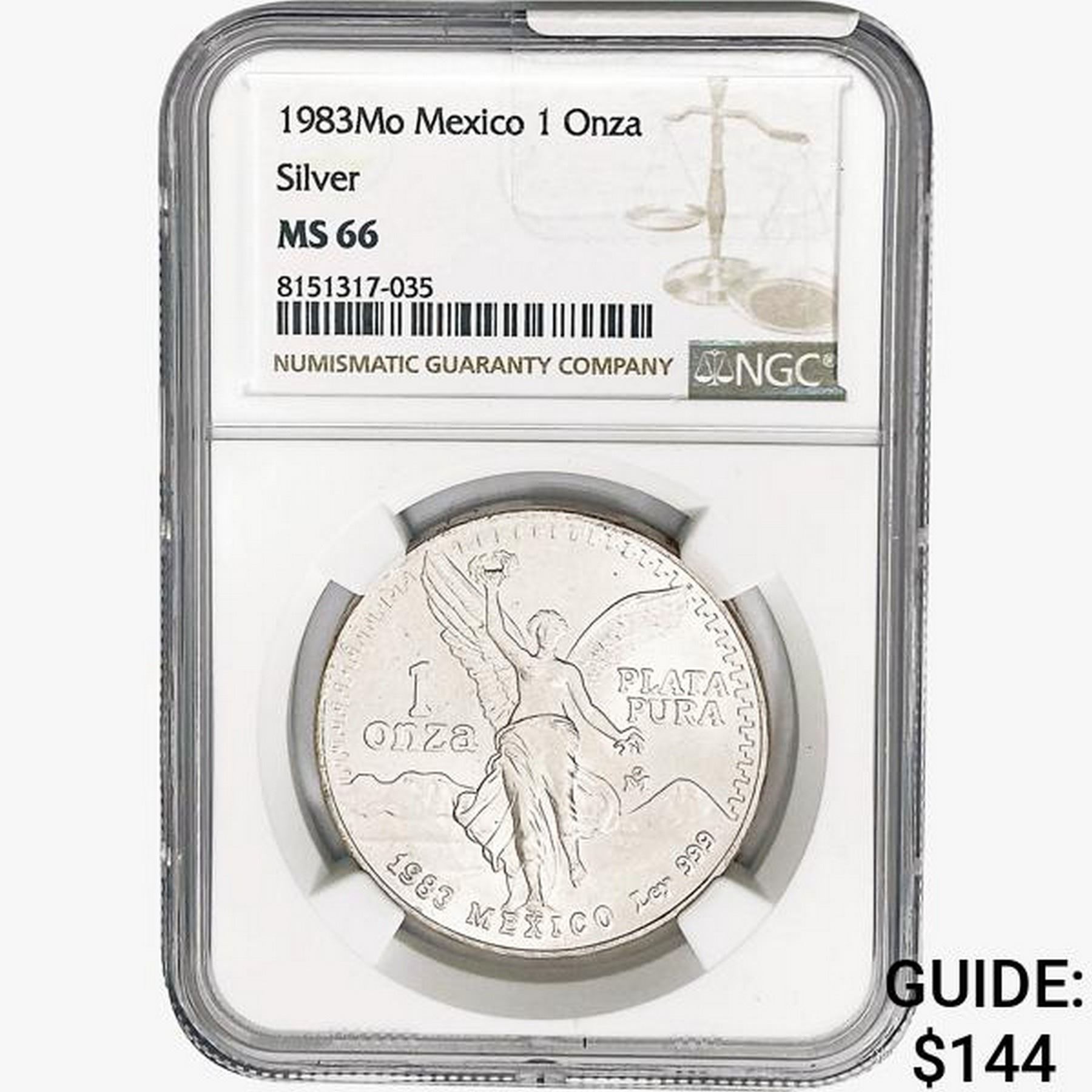 1983Mo 1oz. Silver Mexicanos Onza NGC MS66