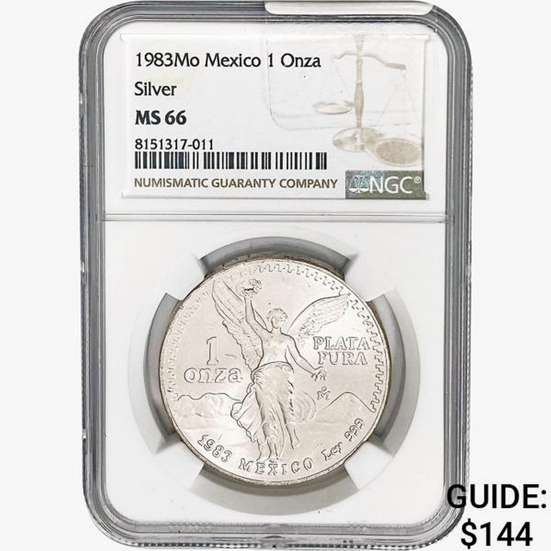 1983Mo 1oz. Silver Mexicanos Onza NGC MS66