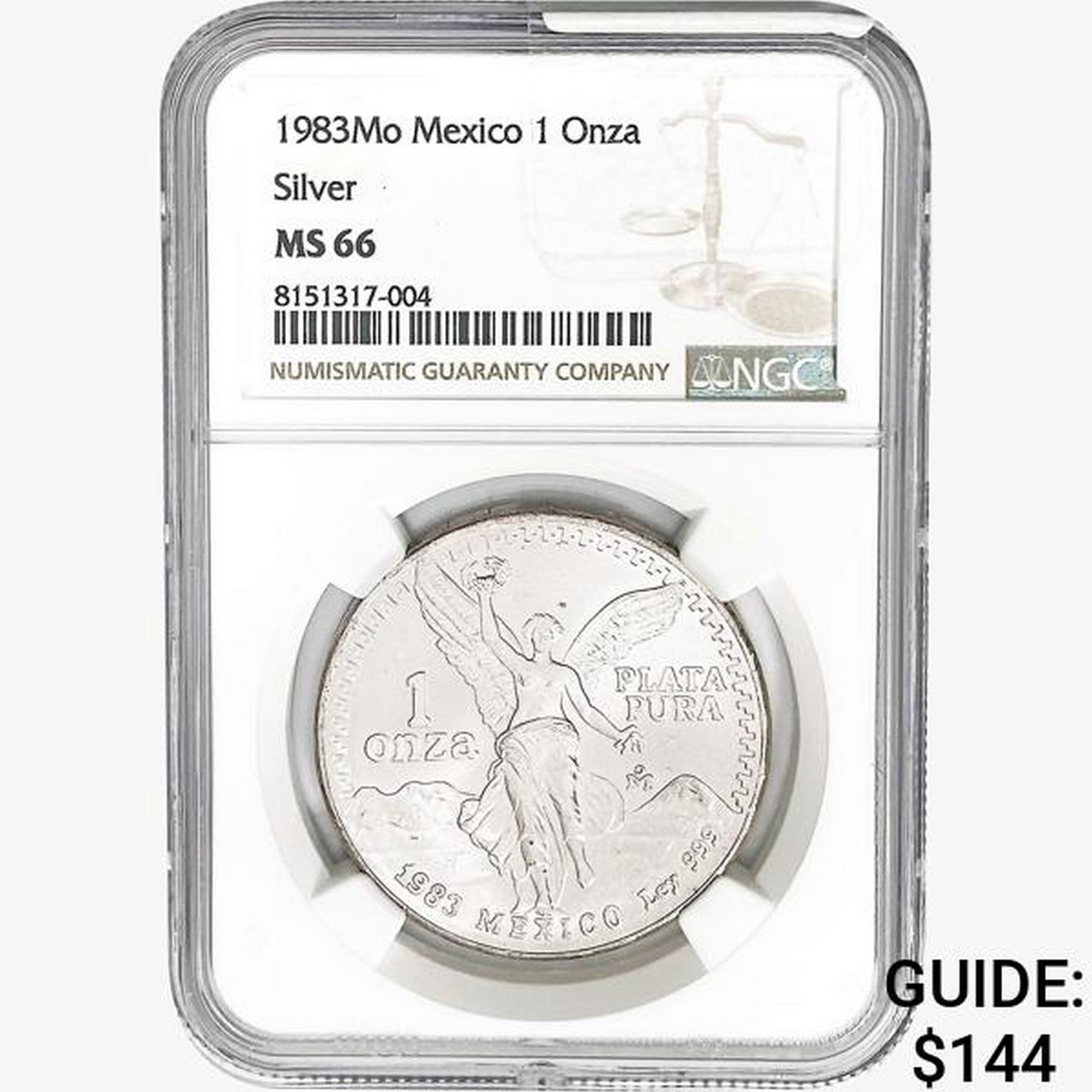 1983Mo 1oz. Silver Mexicanos Onza NGC MS66