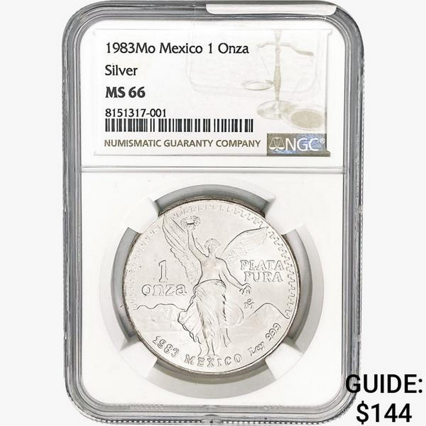 1983Mo 1oz. Silver Mexicanos Onza NGC MS66