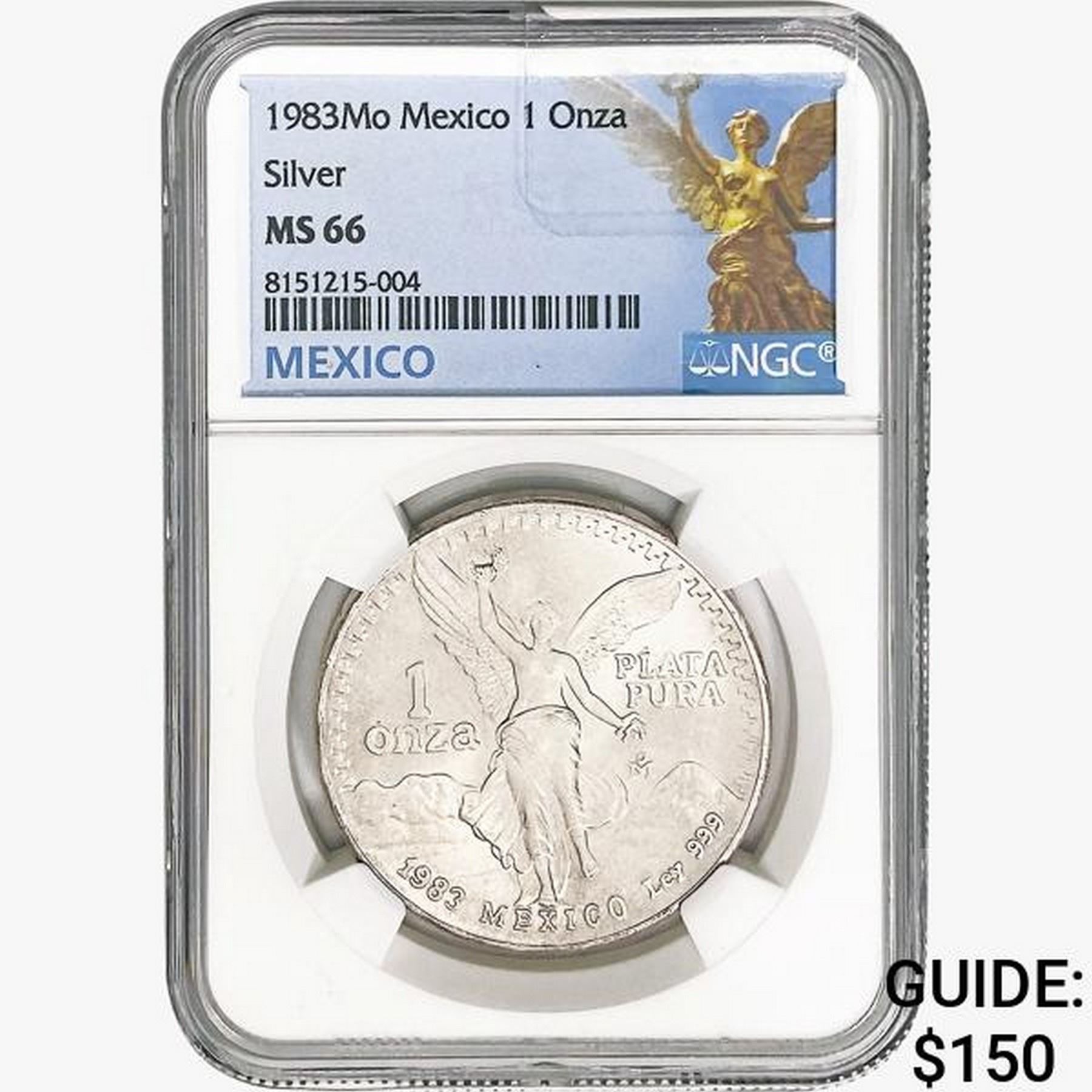 1983Mo 1oz. Silver Mexicanos Onza NGC MS66