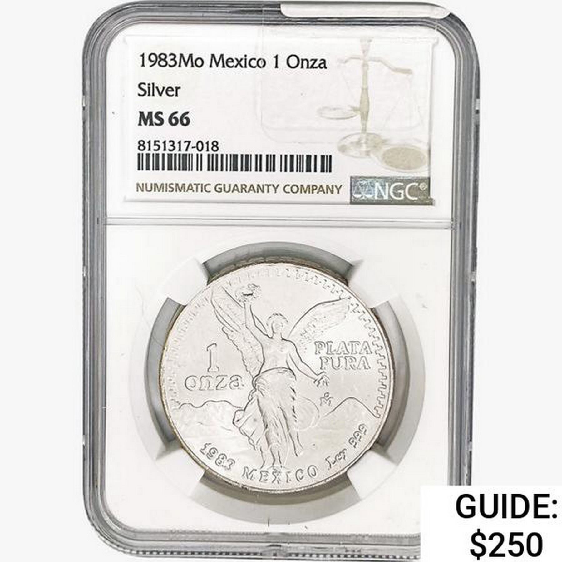 1983Mo 1oz. Silver Mexicanos Onza NGC MS66