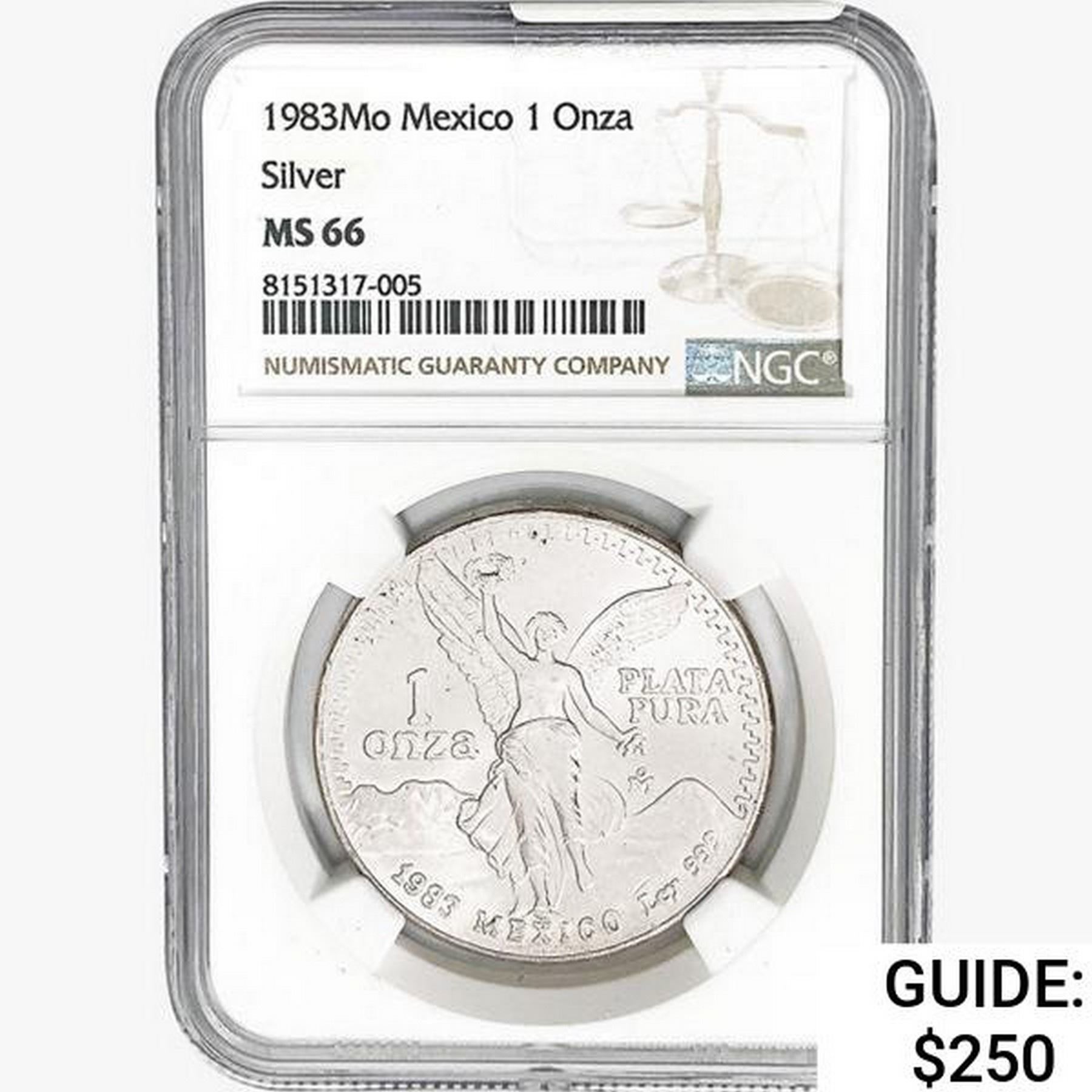1983Mo 1oz. Silver Mexicanos Onza NGC MS66