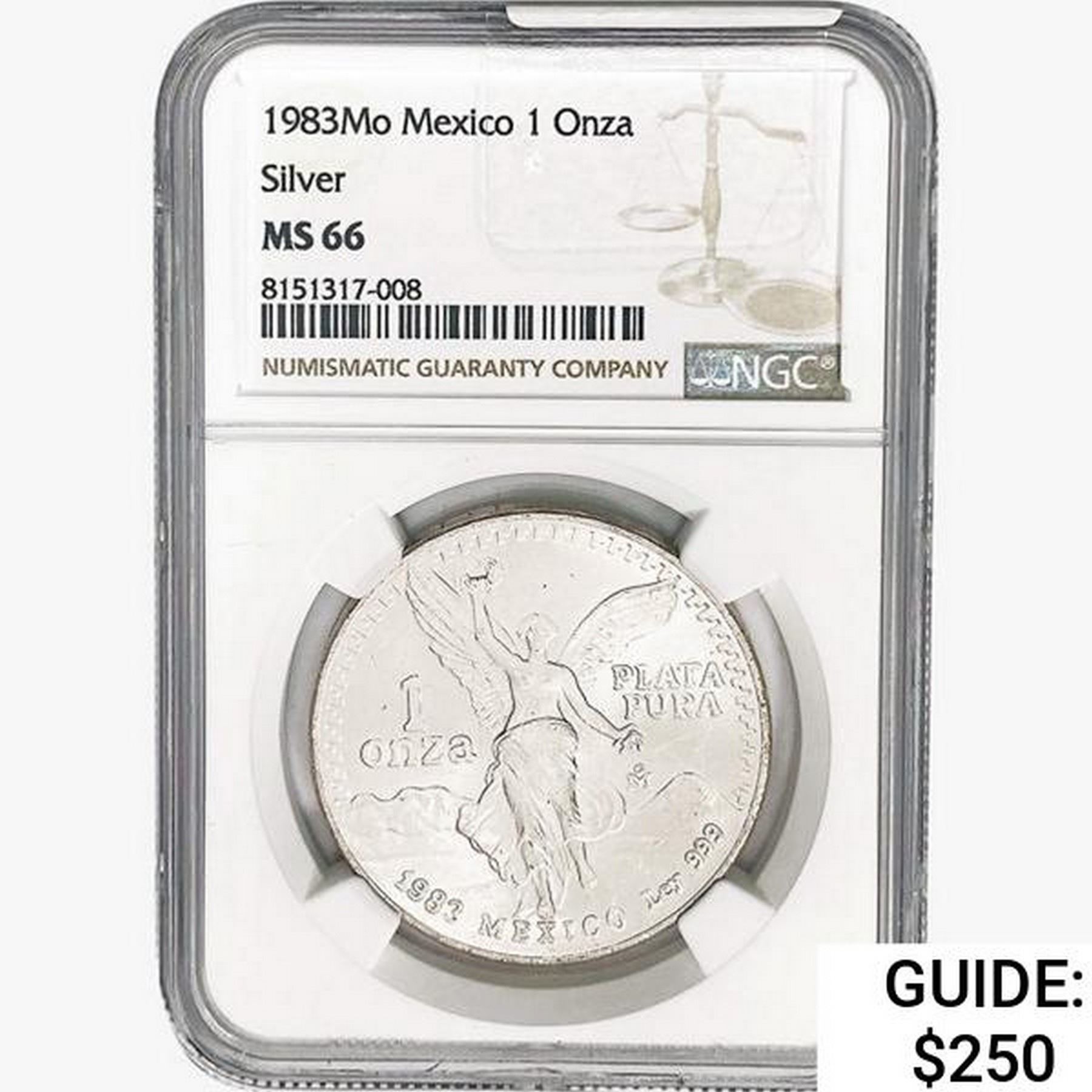 1983Mo 1oz. Silver Mexicanos Onza NGC MS66