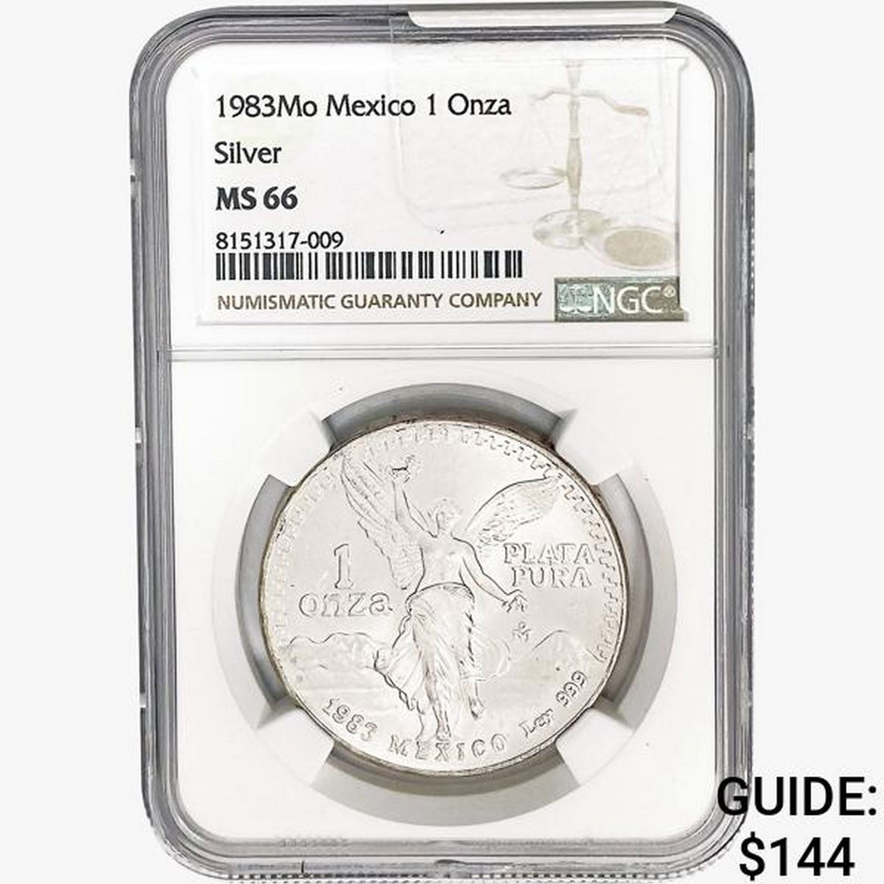 1983Mo 1oz. Silver Mexicanos Onza NGC MS66