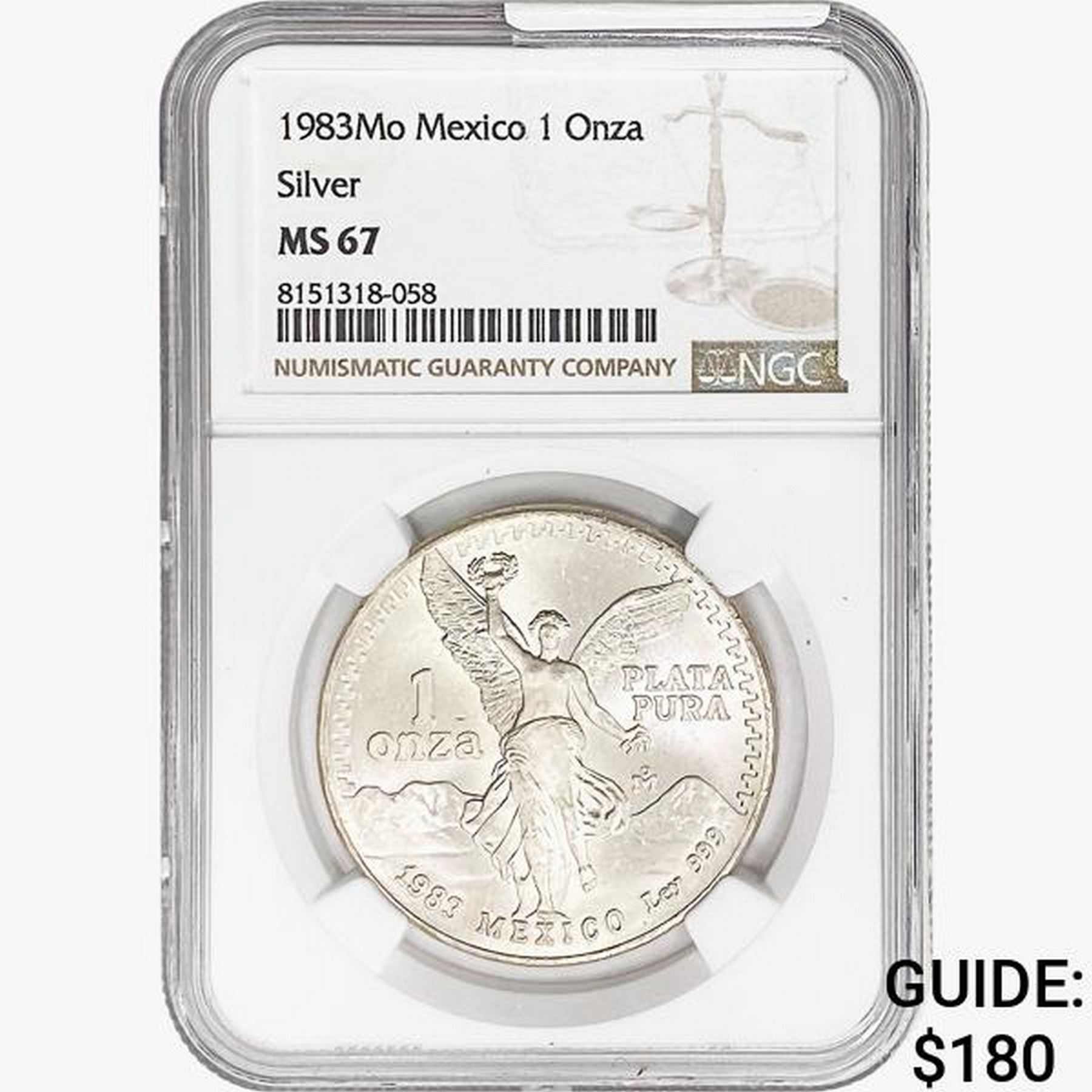 1983Mo 1oz. Silver Mexicanos Onza NGC MS67
