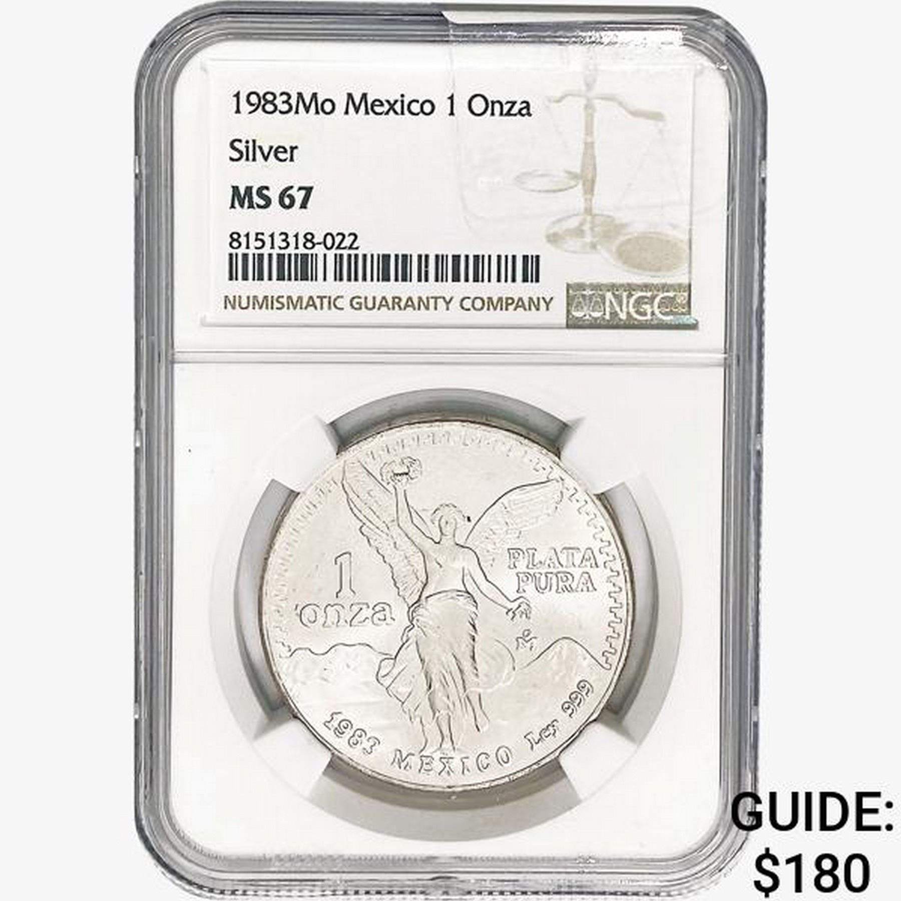 1983Mo 1oz. Silver Mexicanos Onza NGC MS67