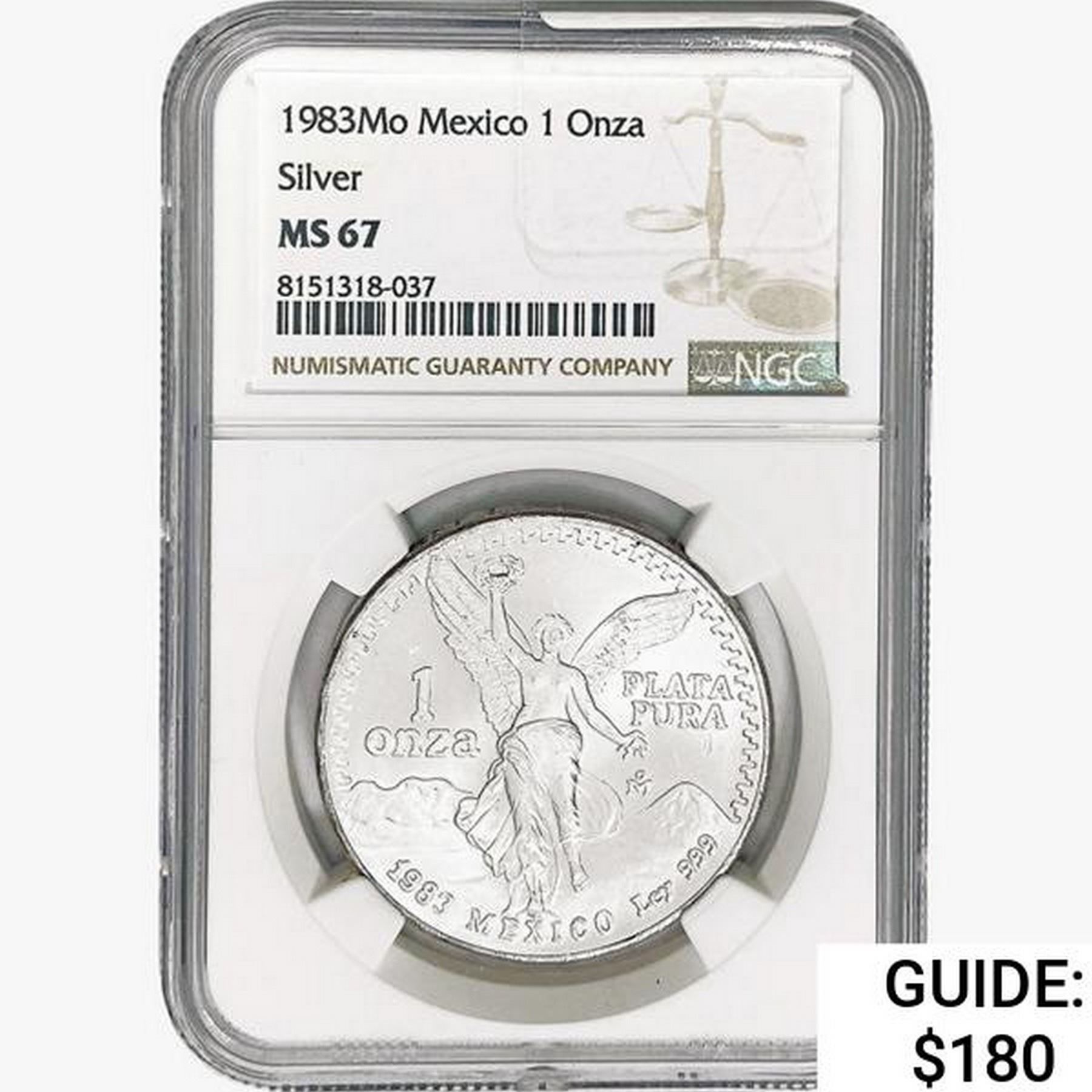 1983Mo 1oz. Silver Mexicanos Onza NGC MS67
