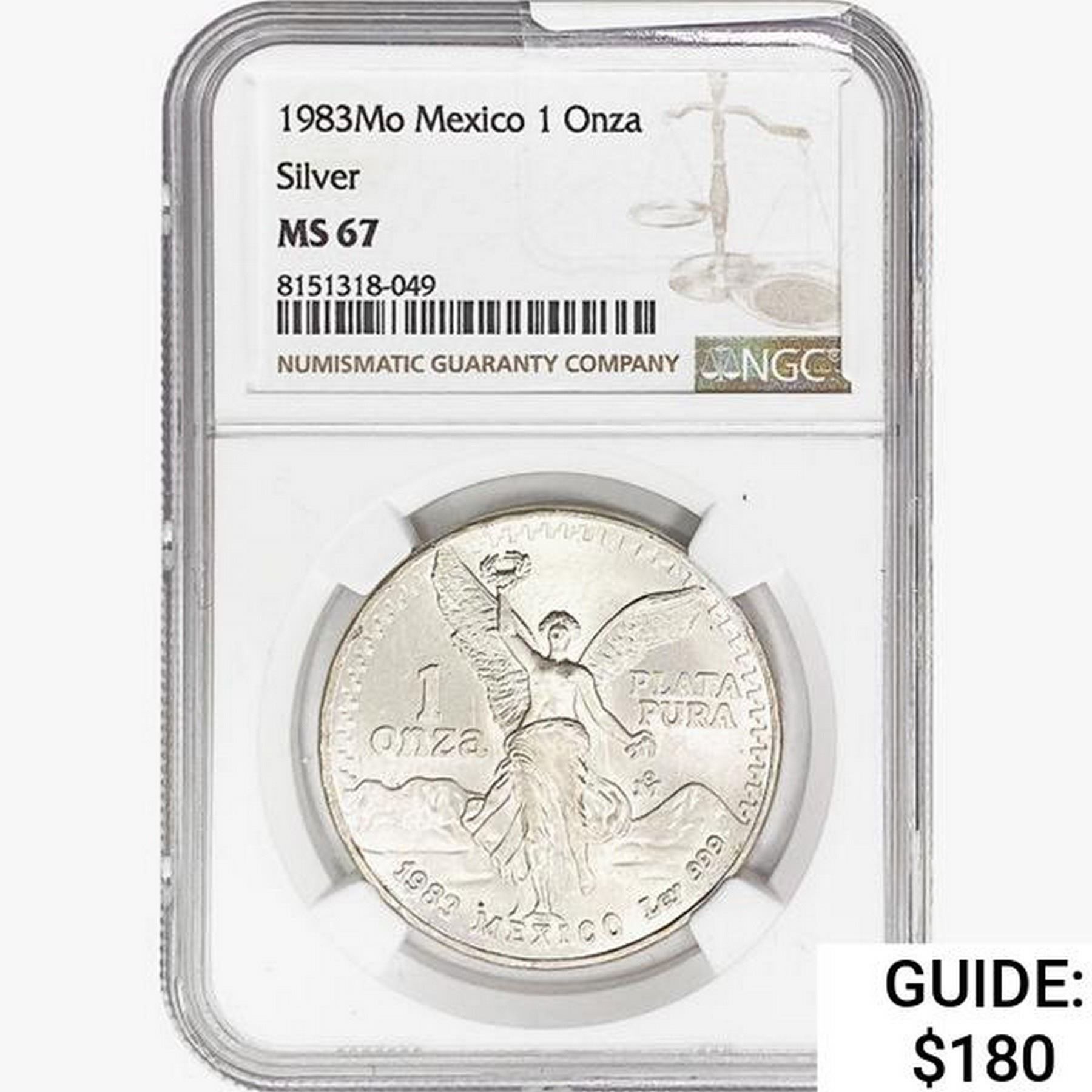 1983Mo 1oz. Silver Mexicanos Onza NGC MS67