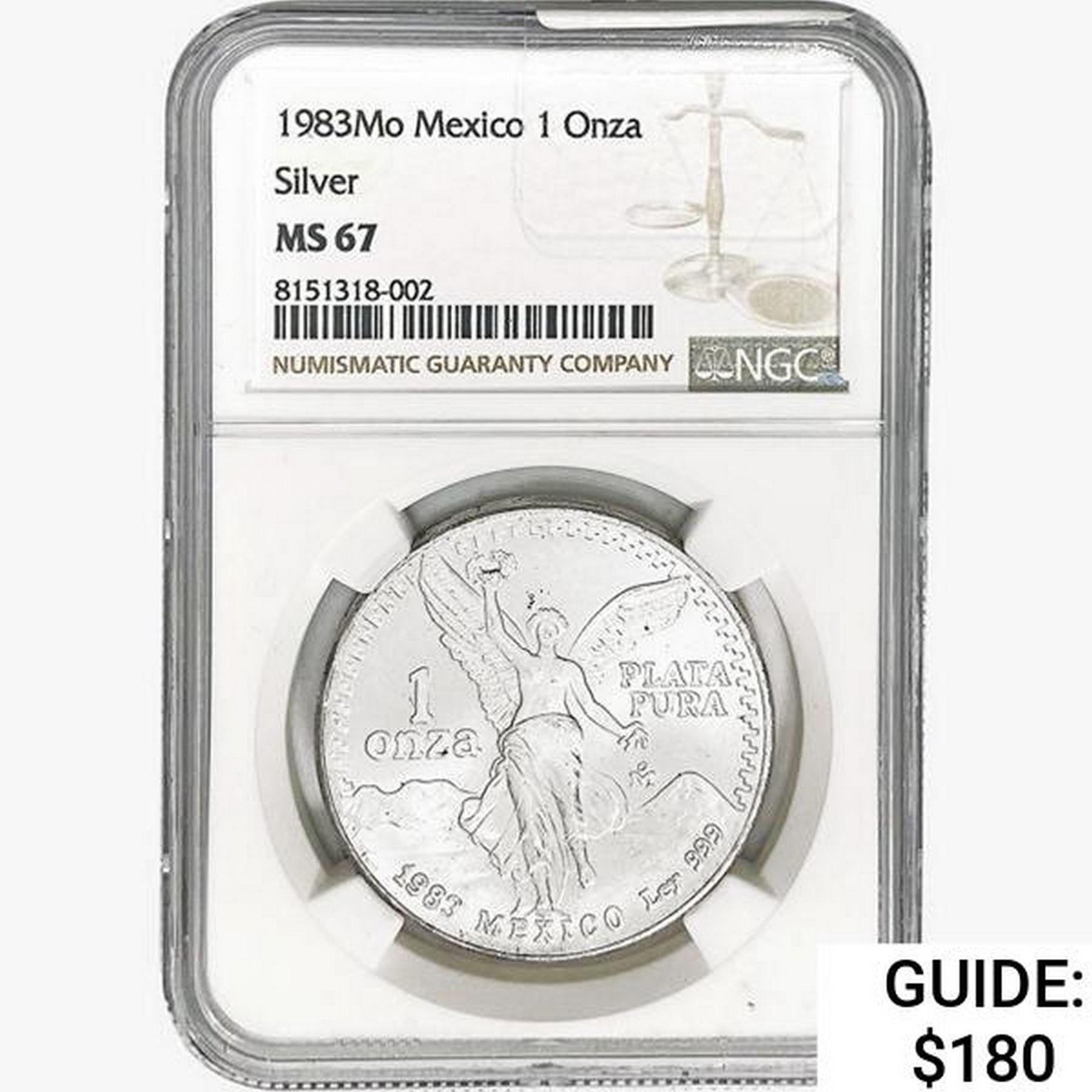 1983Mo 1oz. Silver Mexicanos Onza NGC MS67