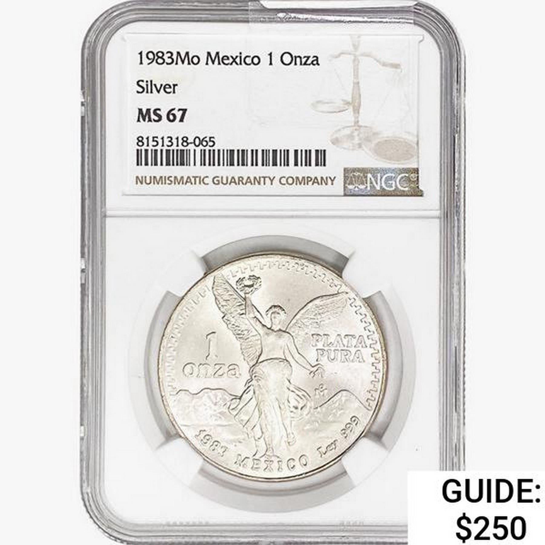1983Mo 1oz. Silver Mexicanos Onza NGC MS67
