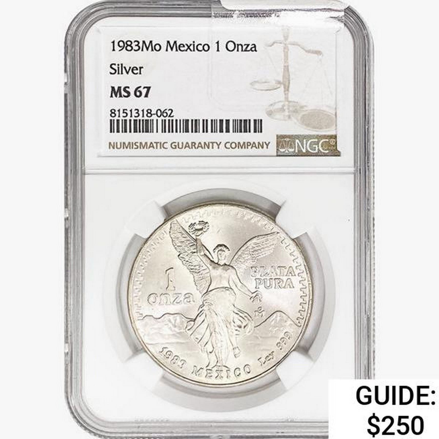 1983Mo 1oz. Silver Mexicanos Onza NGC MS67