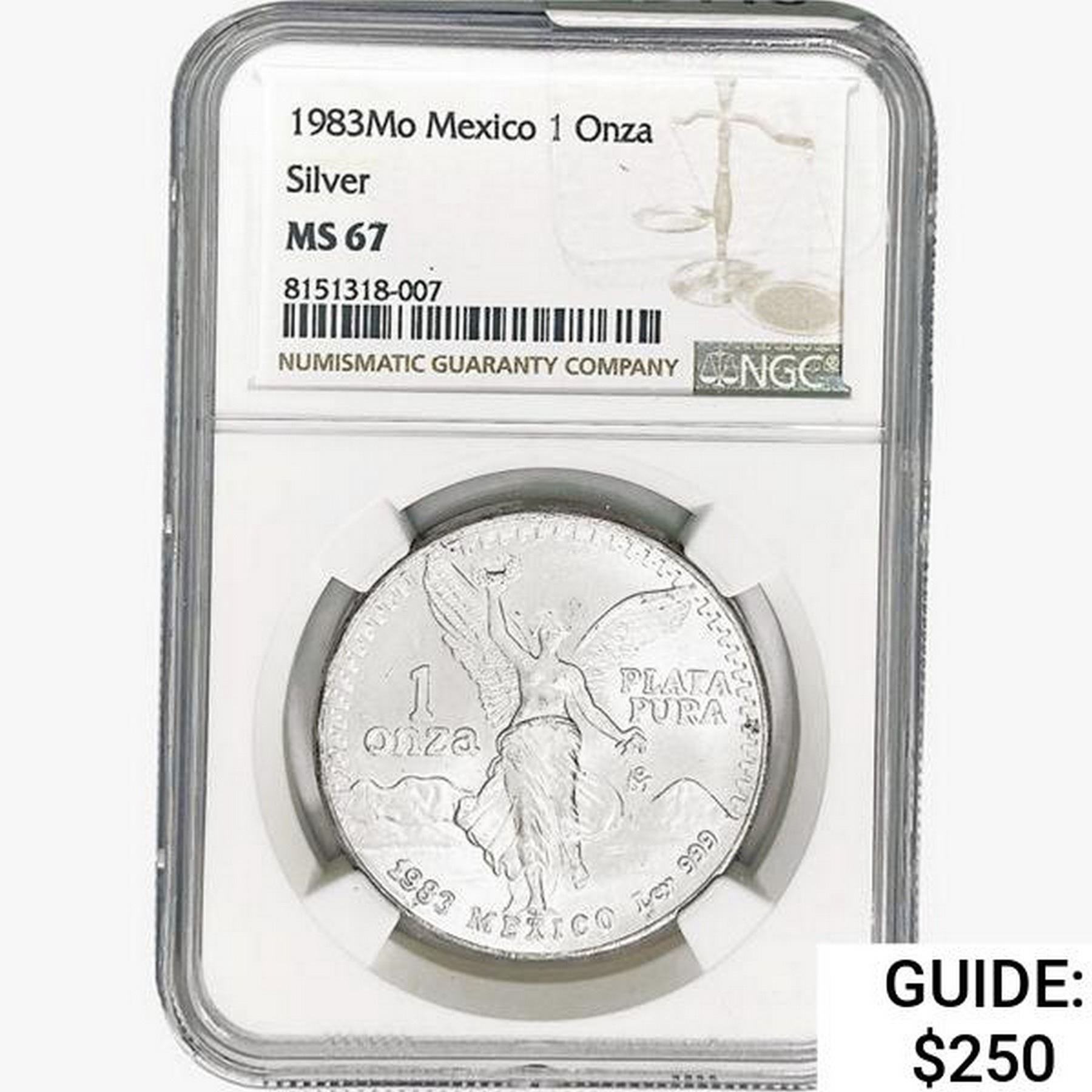 1983Mo 1oz. Silver Mexicanos Onza NGC MS67