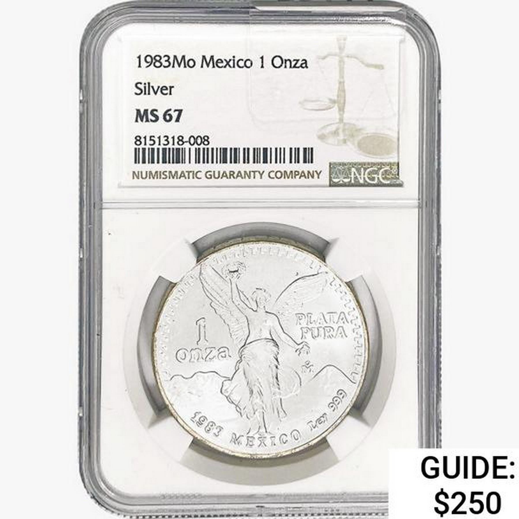 1983Mo 1oz. Silver Mexicanos Onza NGC MS67