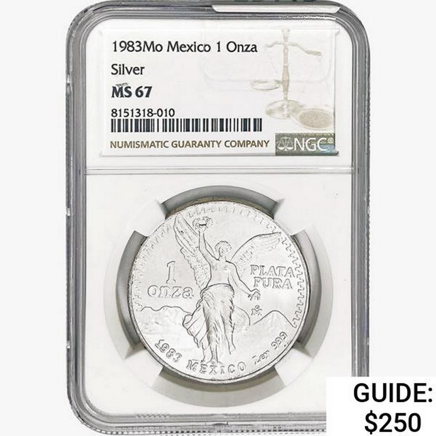 1983Mo 1oz. Silver Mexicanos Onza NGC MS67