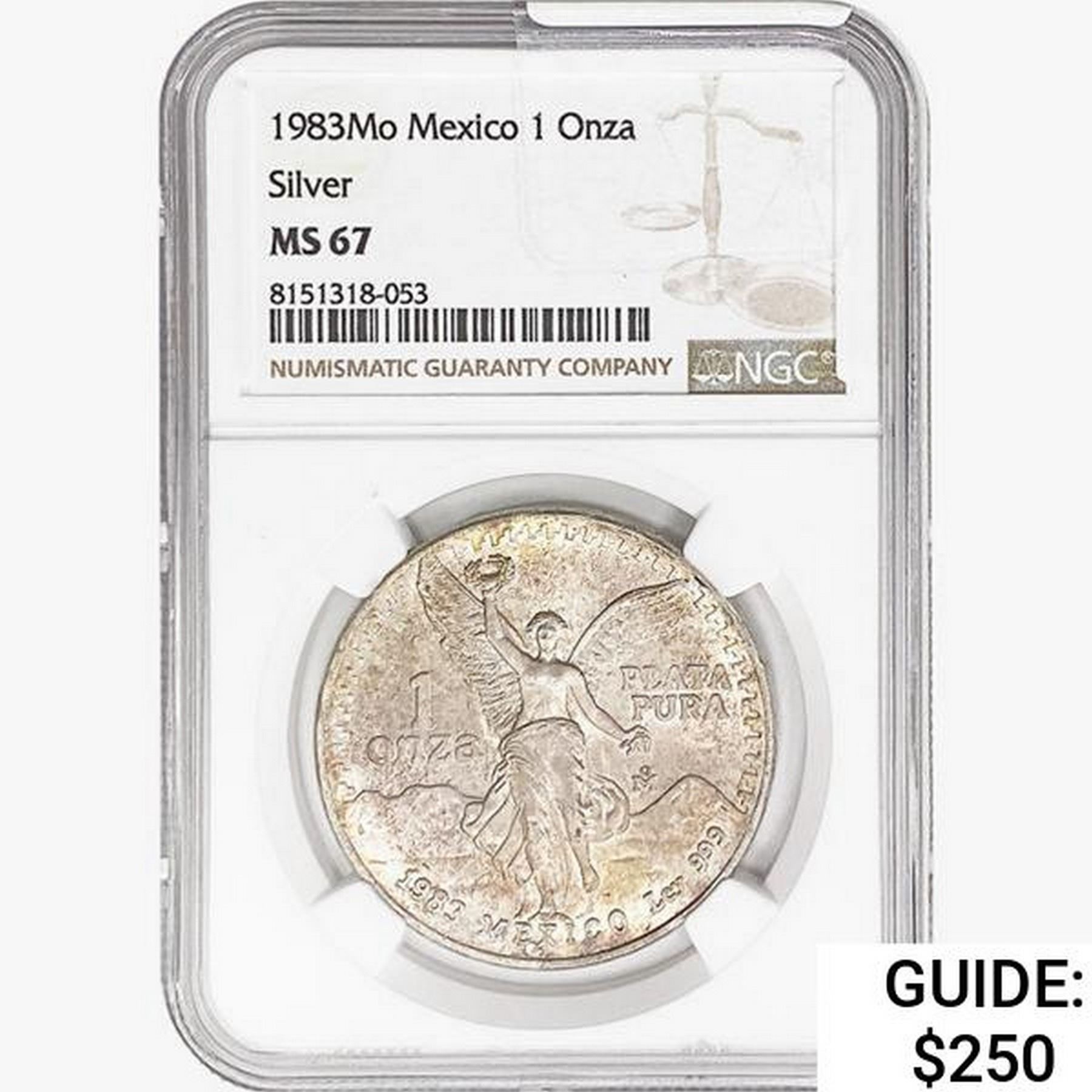 1983Mo 1oz. Silver Mexicanos Onza NGC MS67