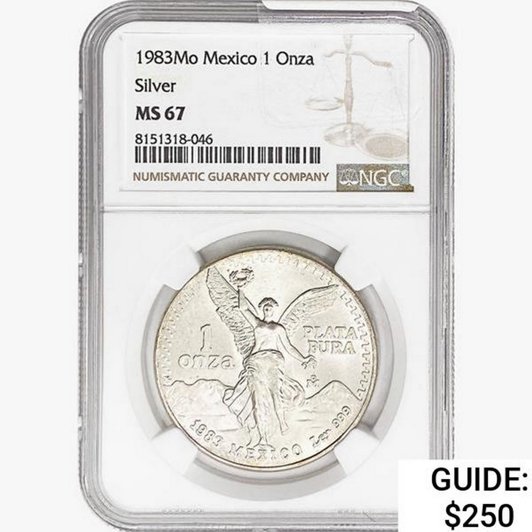 1983Mo 1oz. Silver Mexicanos Onza NGC MS67