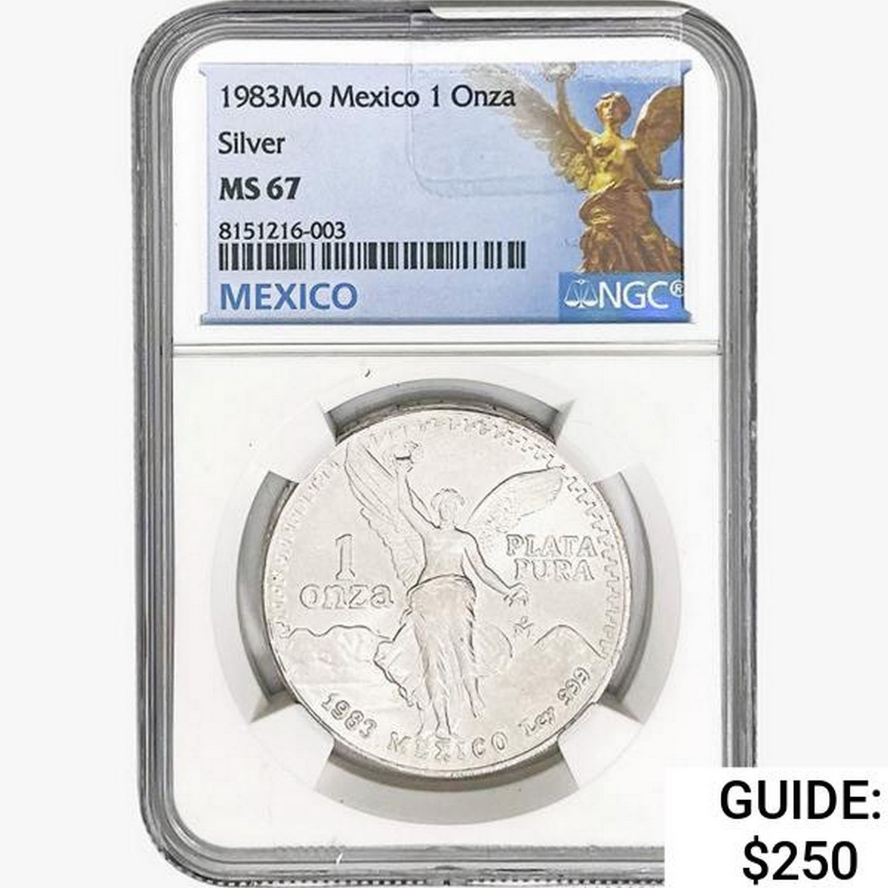 1983Mo 1oz. Silver Mexicanos Onza NGC MS67