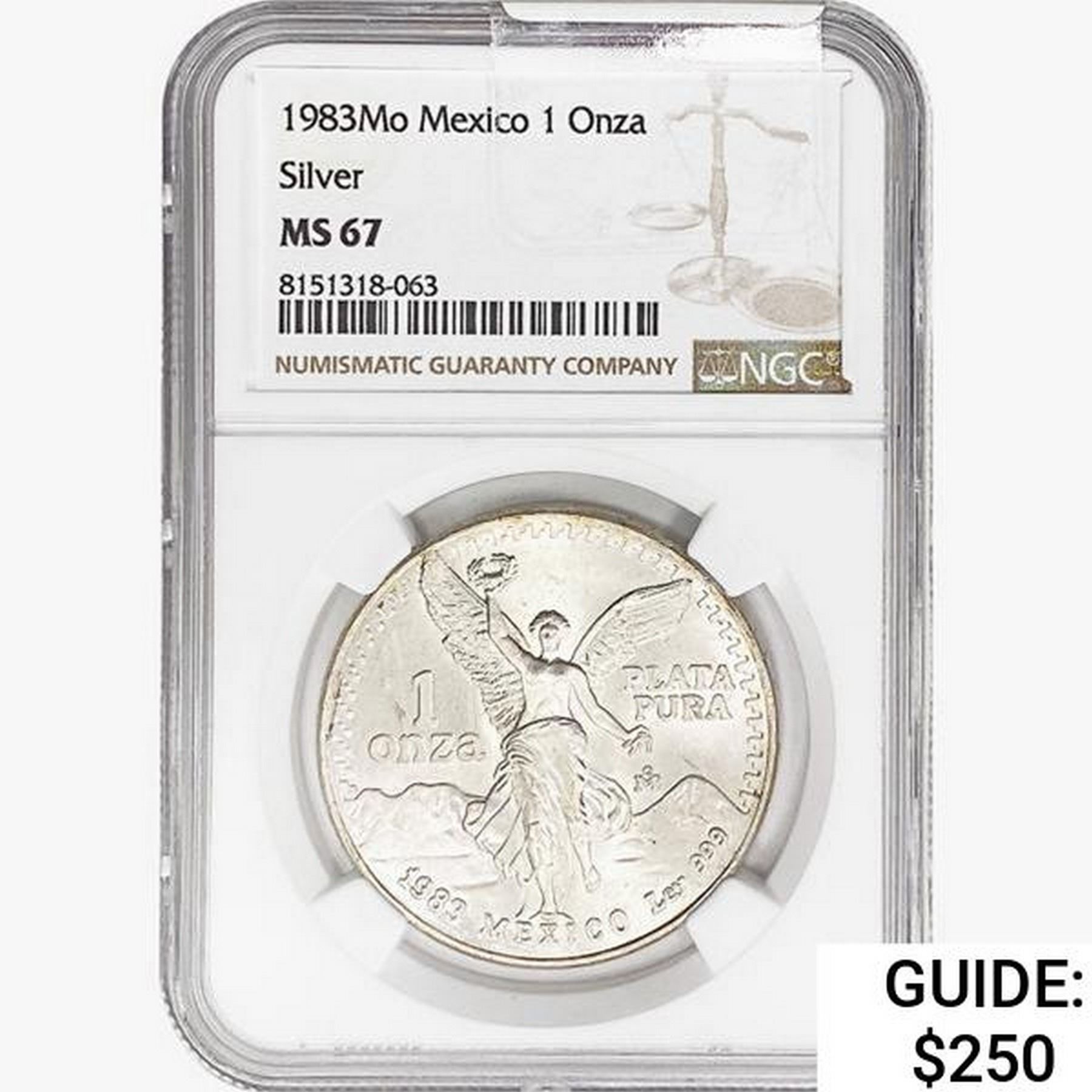 1983Mo 1oz. Silver Mexicanos Onza NGC MS67