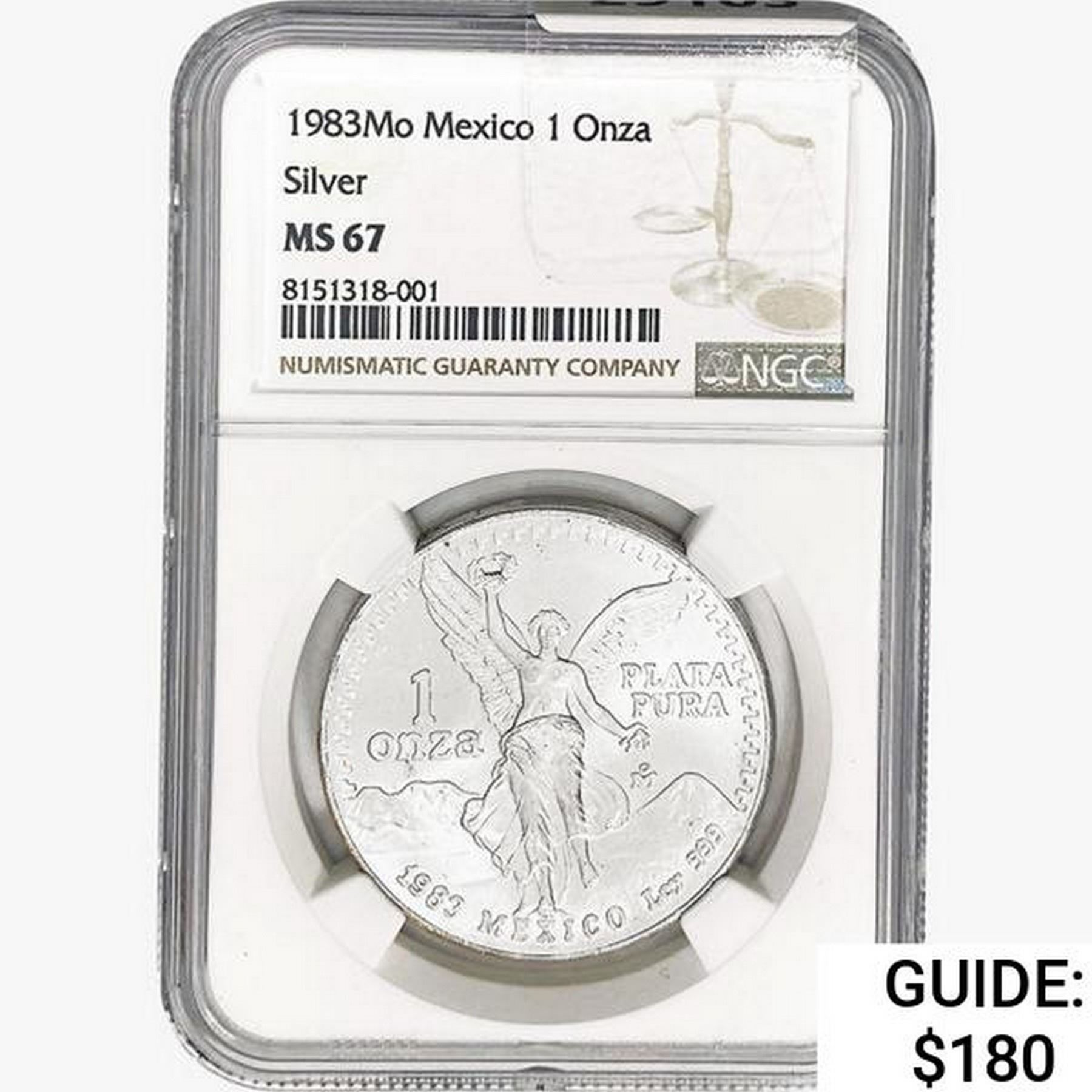1983Mo 1oz. Silver Mexicanos Onza NGC MS67