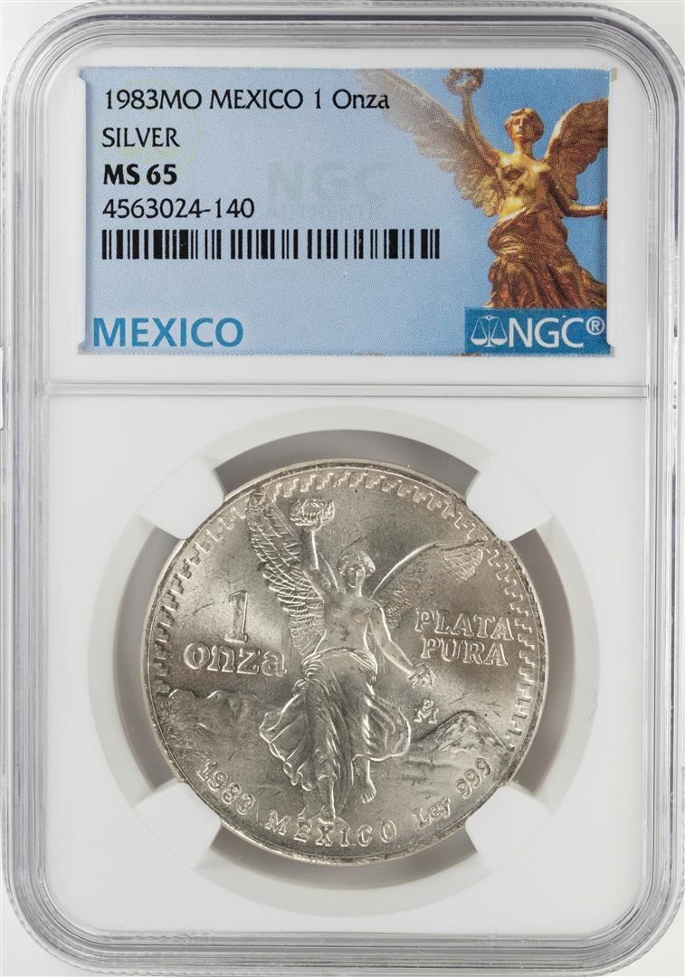 One 1983Mo Mexico 1 Onza Libertad Silver Coin NGC MS65. NGC Certified.