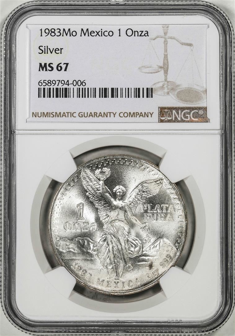 One 1983Mo Mexico 1 Onza Libertad Silver Coin NGC MS67. NGC Certified.
