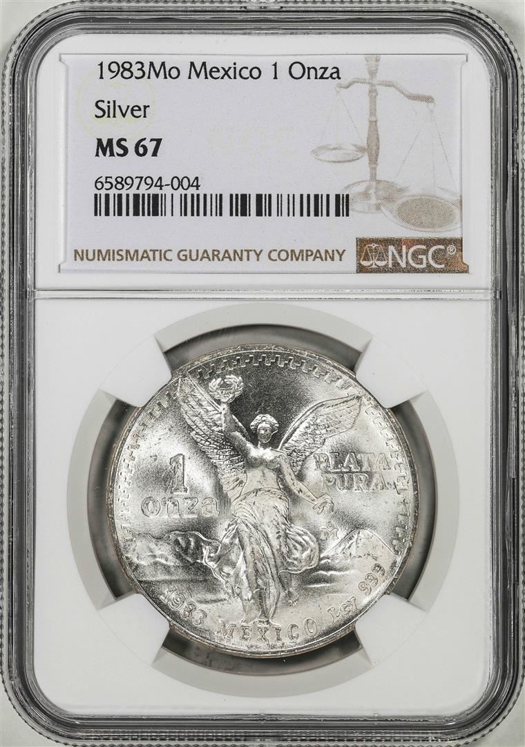 One 1983Mo Mexico 1 Onza Libertad Silver Coin NGC MS67. NGC Certified.