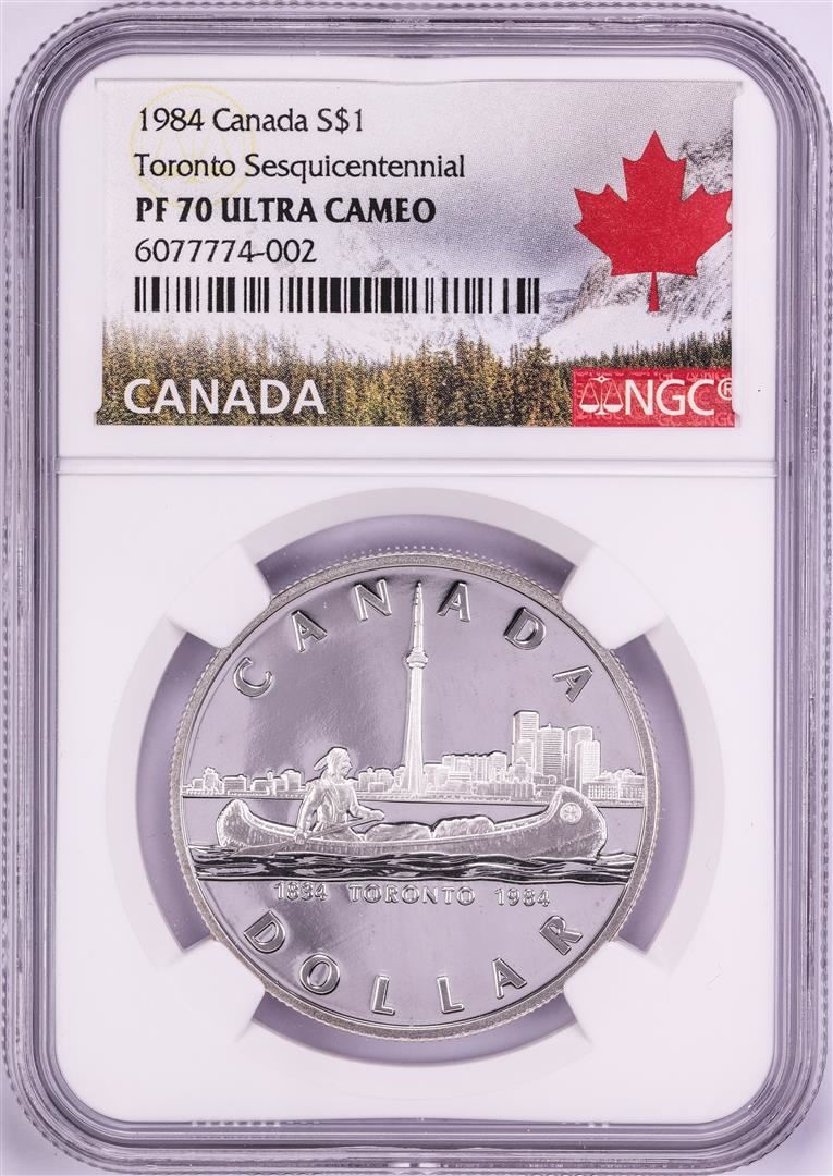 One 1984 $1 Proof Canada Toronto Sesquicentennial Silver Dollar Coin NGC PF70 Ultra Cameo. NGC Certified.
