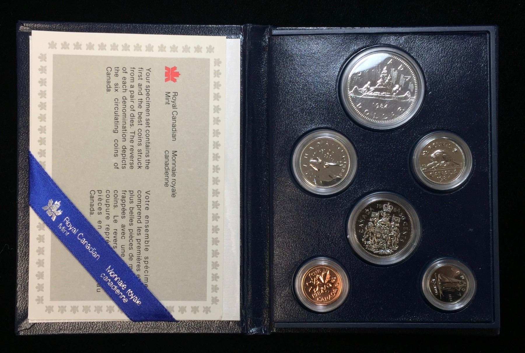 Lot 34; 1984 $1 Voyageurs Canadian Specimen Set, Includes COA and Blue Case