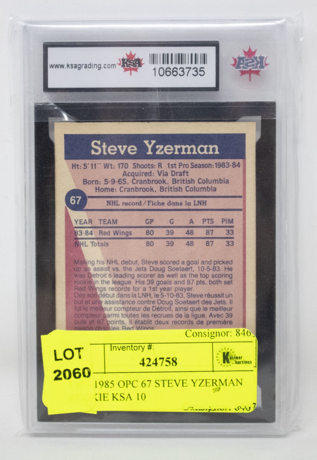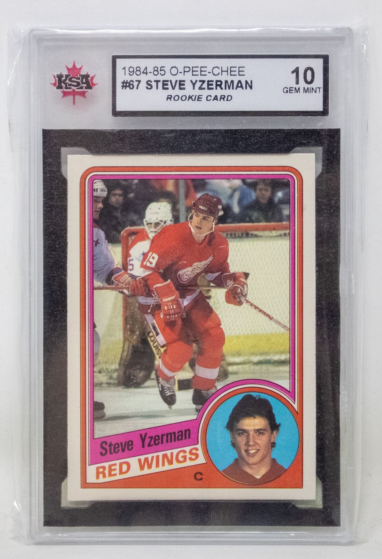 BETWEEN PSA, BGS, SGC AND KSA THERES APPROXIMATELY 148 ROOKIE CARDS OF STEVE YZERMAN GRADED 10. NEARLY 40 YEARS OLD, THIS CARD'S APPROXIMATE CURRENT MARKET VALUE IS 66,000.00 *ALL BIDS SUBJECT TO BANK BAILIFF OR OWNERS