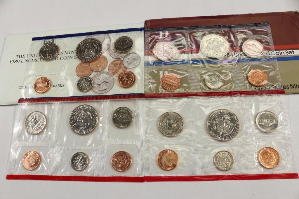 1984 & 1989 US MINT SETS P/D (WITH ENVELOPES)