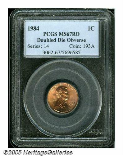 <B>1984<1C> Doubled Die Obverse MS67 Red PCGS.</B></I> FS-037. Lincoln's ear lobe, jaw, and beard are widely die doubled. An orange-rose Superb Gem with a few tiny mint-made trapped gas bubbles that are seemingly always present on examples of this variety.<BR><I>From The Western Hills Collection.</B></I>