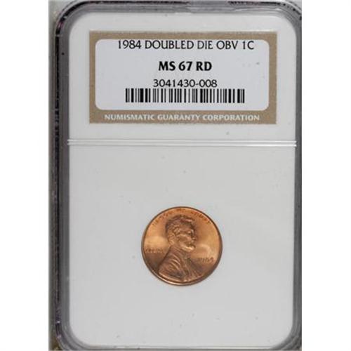 <B>1984 1C Doubled Die Obverse MS67 Red NGC.</B></I> NGC Census: (109/40). PCGS Population (141/15). Mintage: 8,151,078,912. Numismedia Wsl. Price for NGC/PCGS coin in MS67: $260. (#3062)<BR><BR><B>Coin Engraver:</B> Victor D. Brenner<BR><BR><b>Shipping:</b> Coins & Currency (<a target="_blank" href="http://www.heritageauctions.com/common/shipping.php">view shipping information</a>)