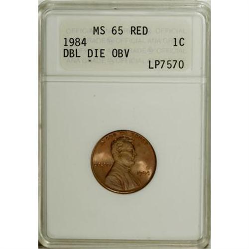 <B>1984 1C Double Die Obverse MS65 Red ANACS.</B></I> NGC Census: (14/75). PCGS Population (34/353). (#3059)<BR><BR><B>Coin Engraver:</B> Victor D. Brenner<BR><BR><b>Shipping:</b> Coins & Currency (<a target="_blank" href="http://www.heritageauctions.com/common/shipping.php">view shipping information</a>)