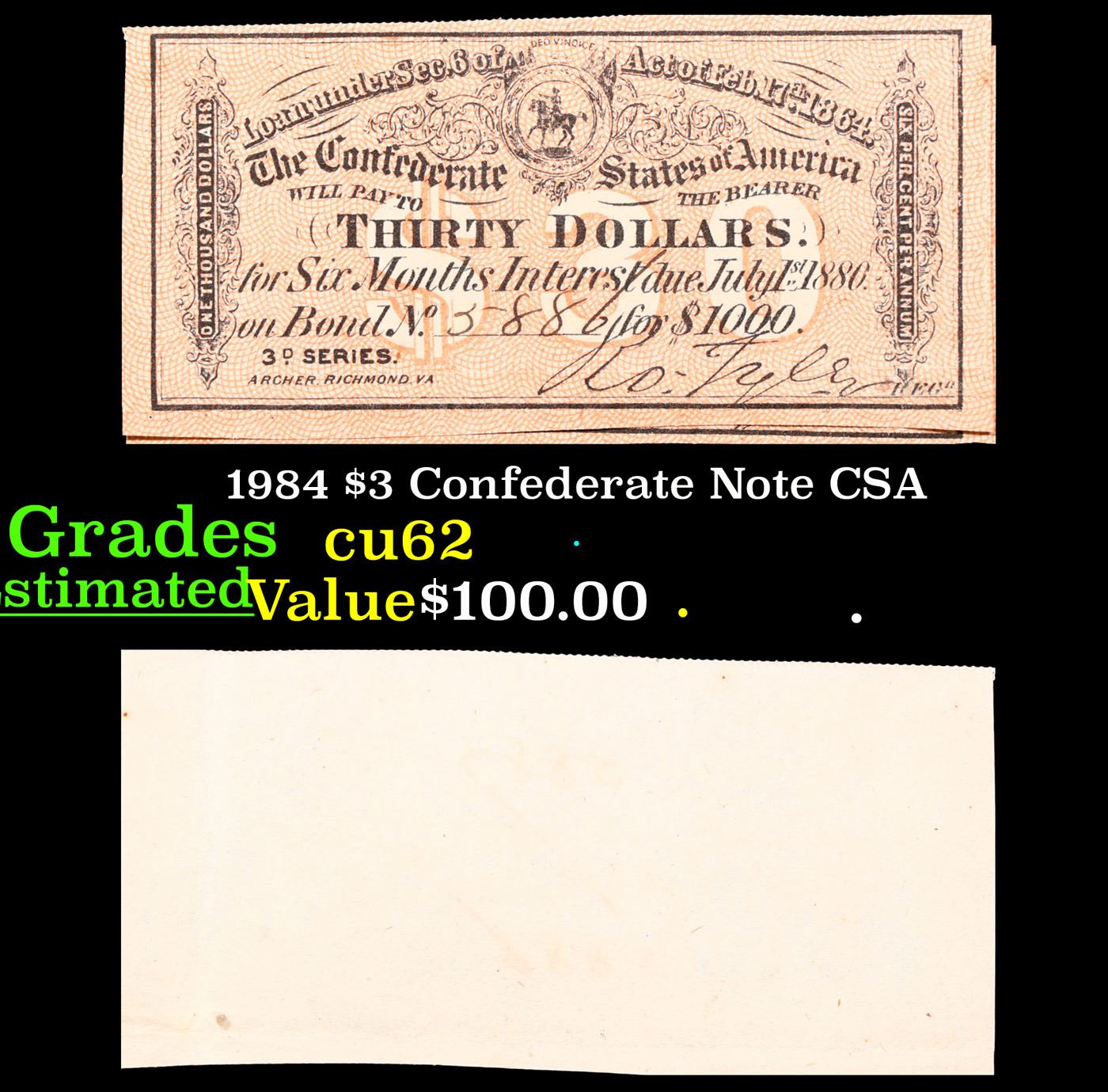1984 $3 Confederate Note CSA Grades Select CU. 0