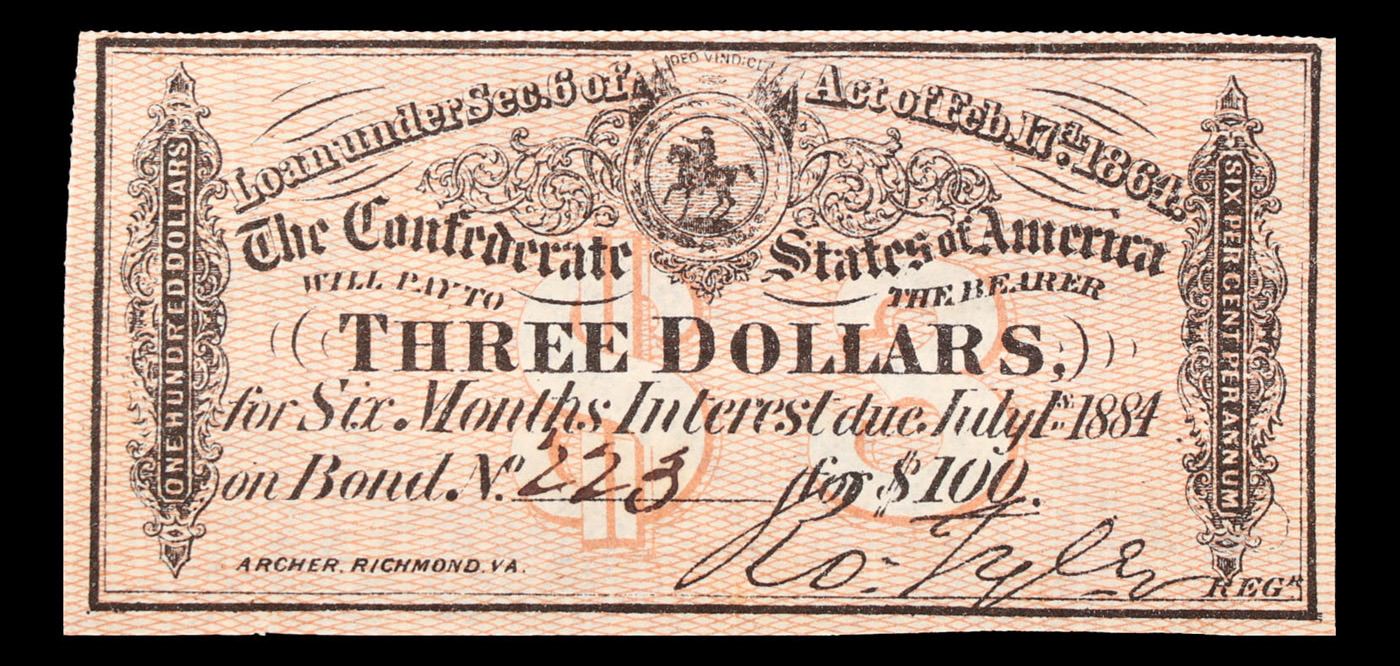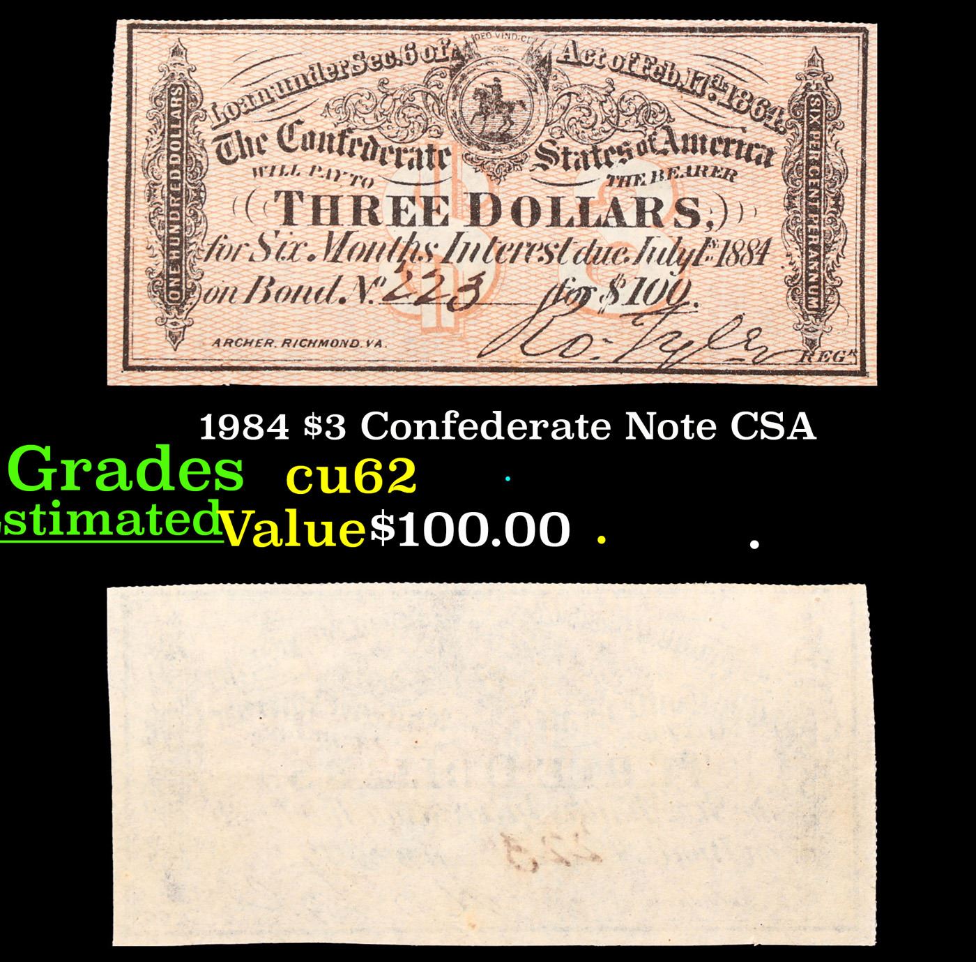 1984 $3 Confederate Note CSA Grades Select CU. 0