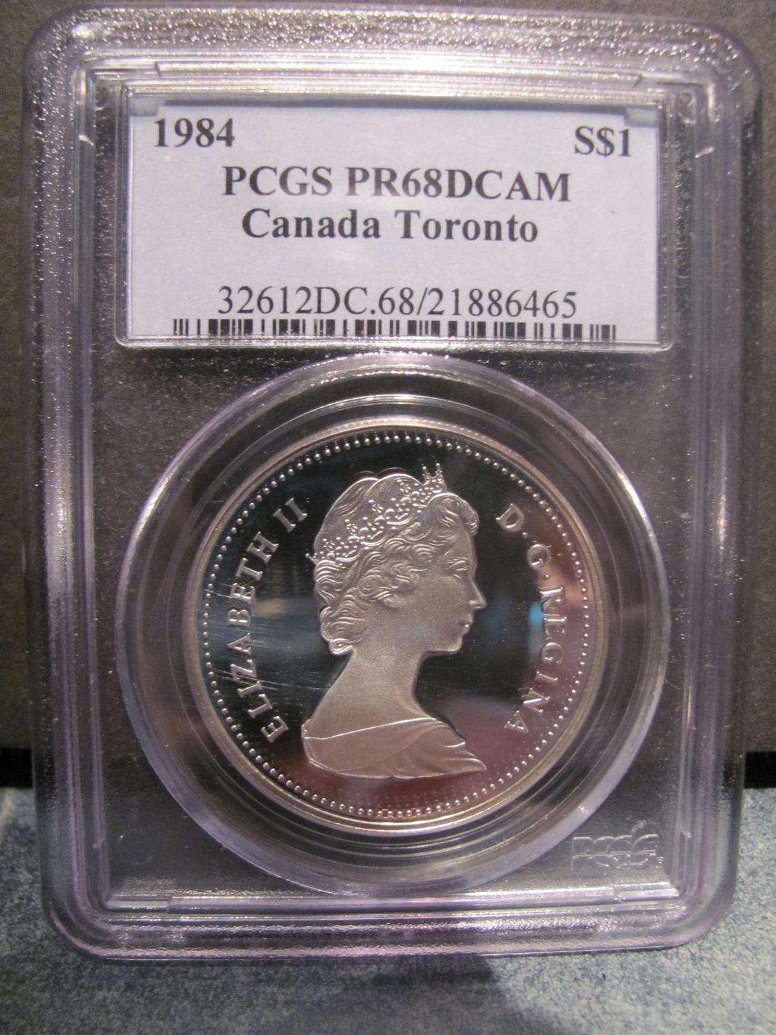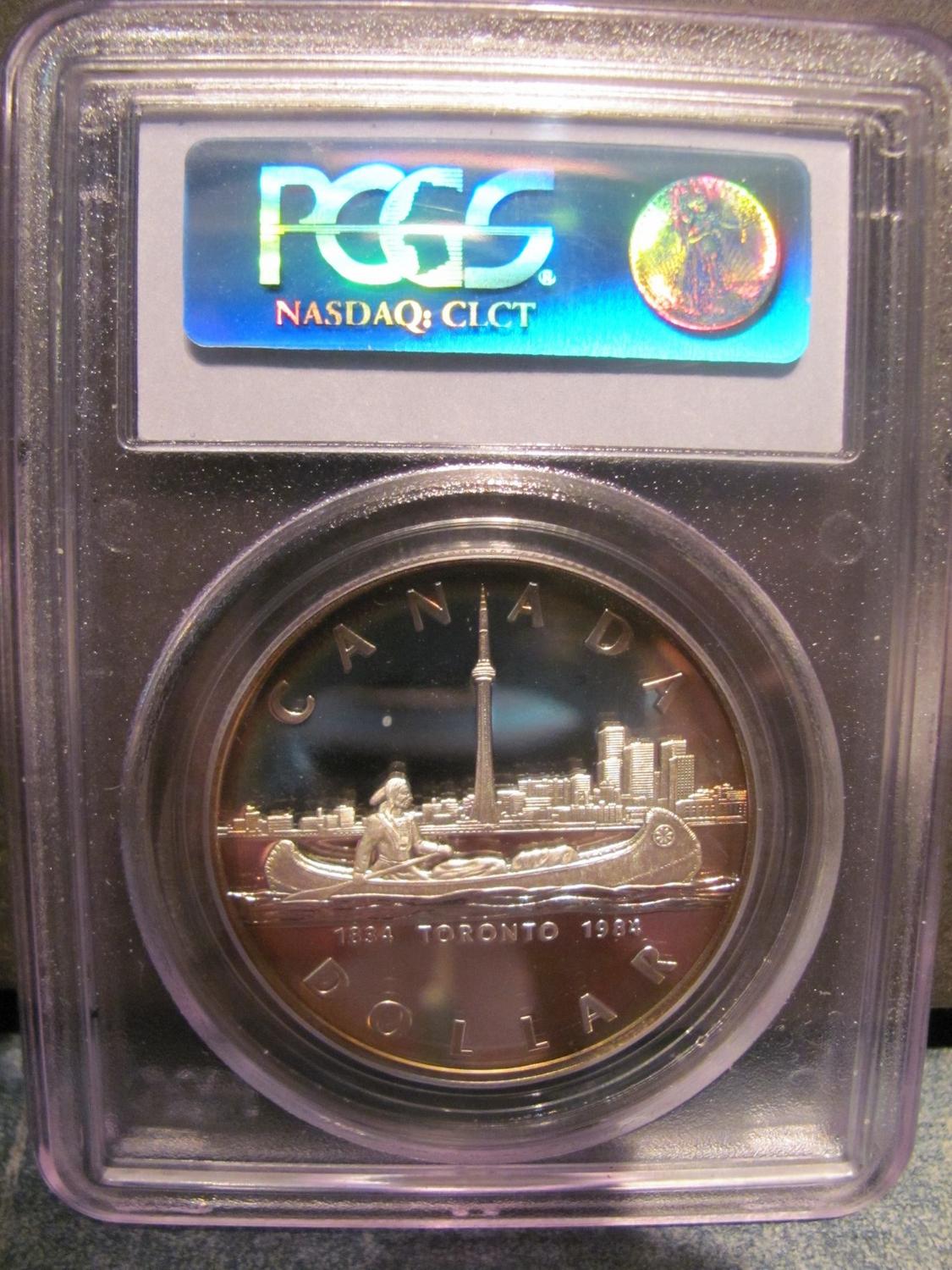 Coin graded by PCGS PR68 DCAM Canadian Silver dollat sesquicentennial of Toronto