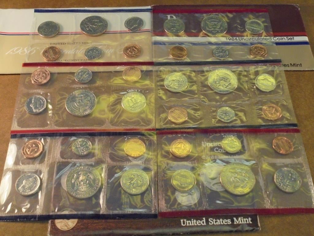 1984,85 & 86 US MINT SETS P/D (WITH ENVELOPES)