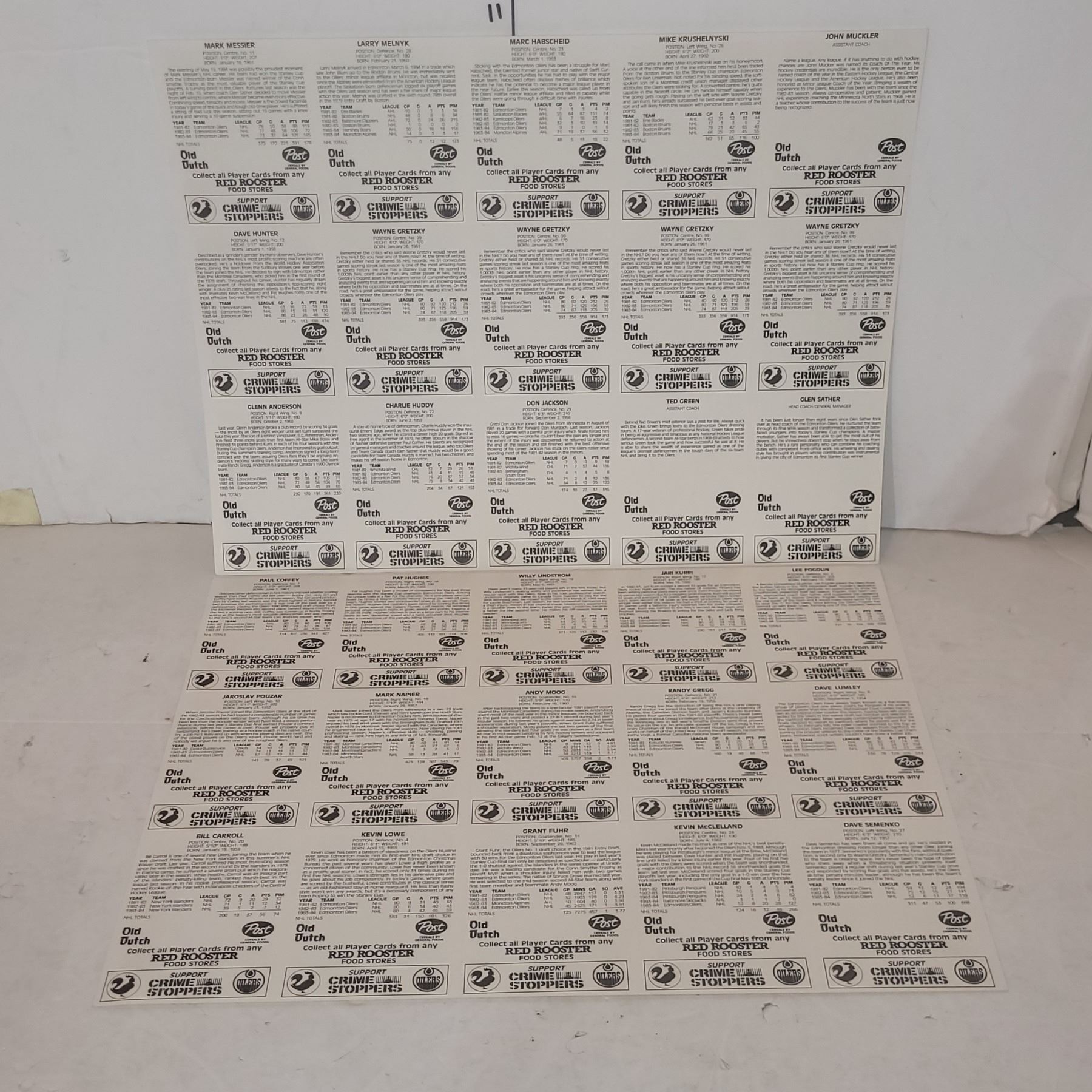 1984-85 Edmonton Oilers Red Rooster 2 Uncut Sheets, Includes 4 Wayne Gretzky MINT