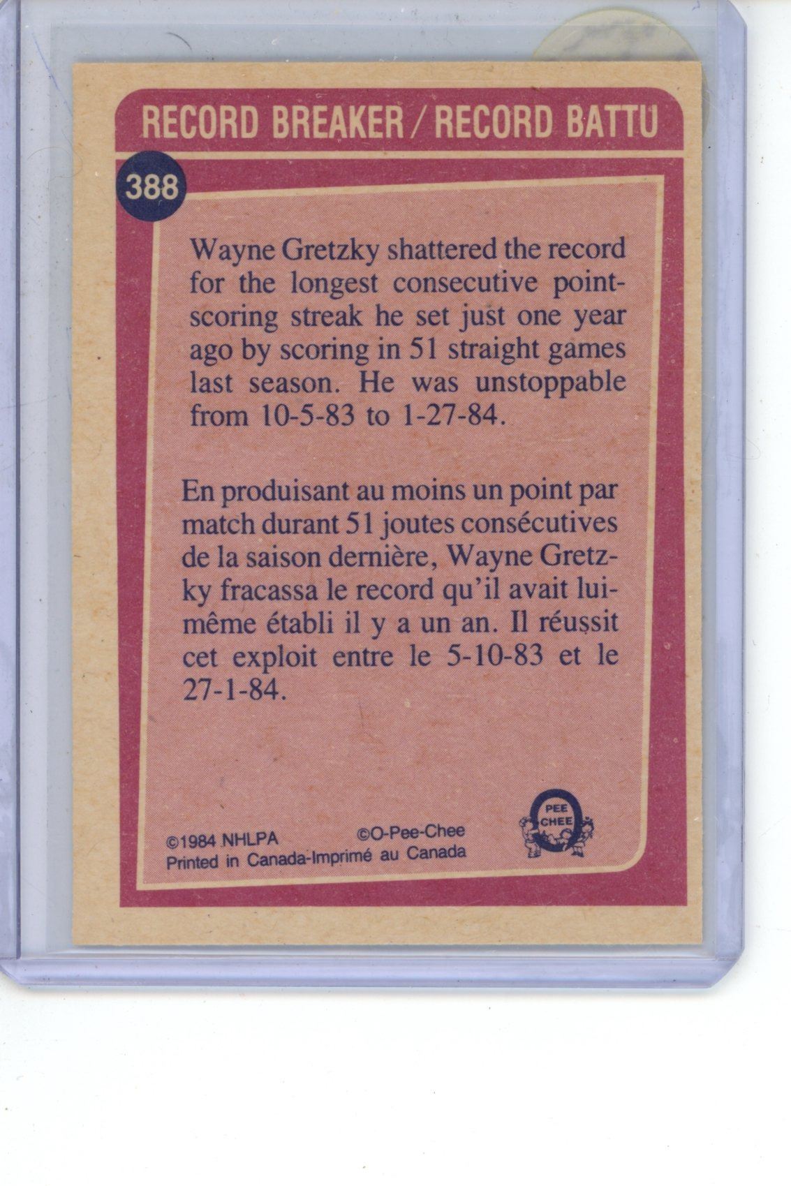 1984-85 Gretzky Record Breaker OPC #388