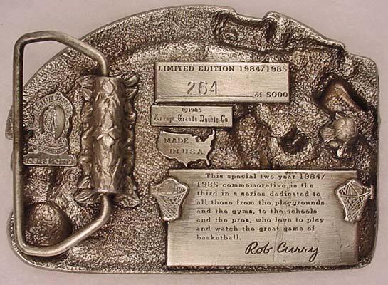 1984-85 LTD. ED. BASKETBALL COMMEMORATIVE PEWTER BELT BUCKLE - BY ARROYO GRANDO