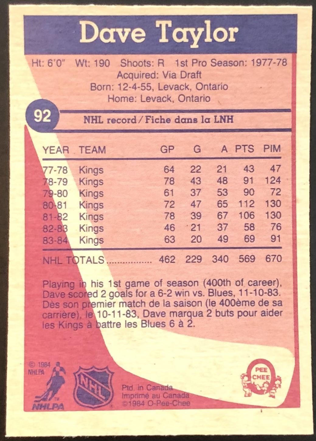 Card #92 NHL, hockey, vintage, OPC, hall of fame